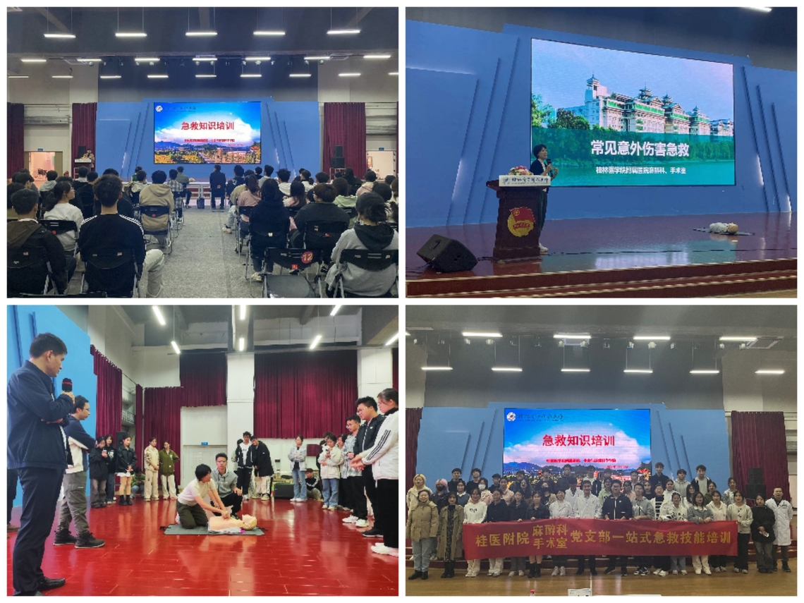 11月19日,应我院邀请,桂林医学院附属医院麻醉科党支部书记王永旺、手术室党支部副书记李毅带队来校开展应急救护知识培训,学院相关负责人、辅导员、各学院学生代表100余人参加活动。