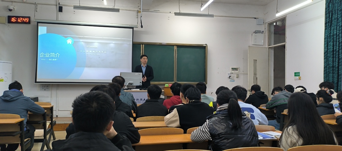 陈洪波院长向周文博经理详细介绍了生物医学工程专业人才培养方案、毕业生总体情况、就业情形等,双方围绕校企合作、人才培养、实习就业等内容展开深入交流。随后,周文博经理面向生物医学工程专业毕业生和低年级学生开展了企业宣讲和就业招聘,并现场组织了毕业生面试,与部分毕业生达成了初步就业意向。