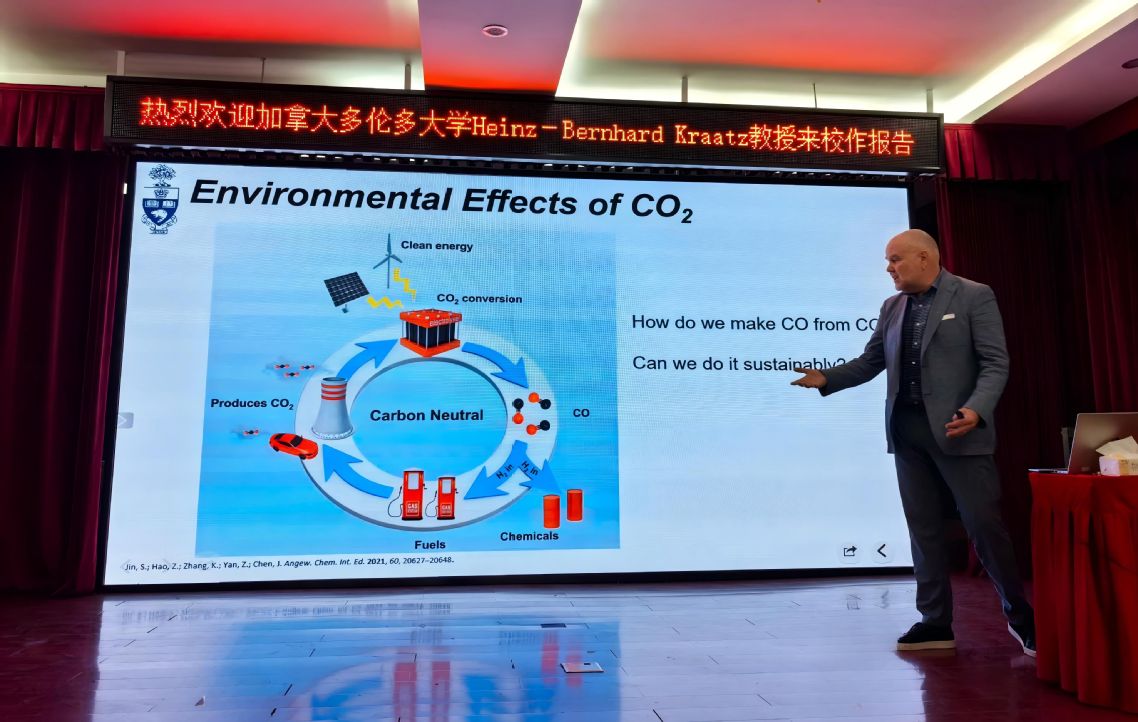 4月21日,应生命与环境科学学院、材料科学与工程学院等邀请,加拿大多伦多大学副校长、皇家学院院士、知名化学教授Heinz-Bernhard Kraatz在花江校区1教1106报告厅开展了一场题为“金属气凝胶复合材料在二氧化碳电化学还原中的应用”的学术讲座。讲座由外籍院士孙立贤教授主持,本次讲座吸引了学校众多师生前来聆听,现场座无虚席。