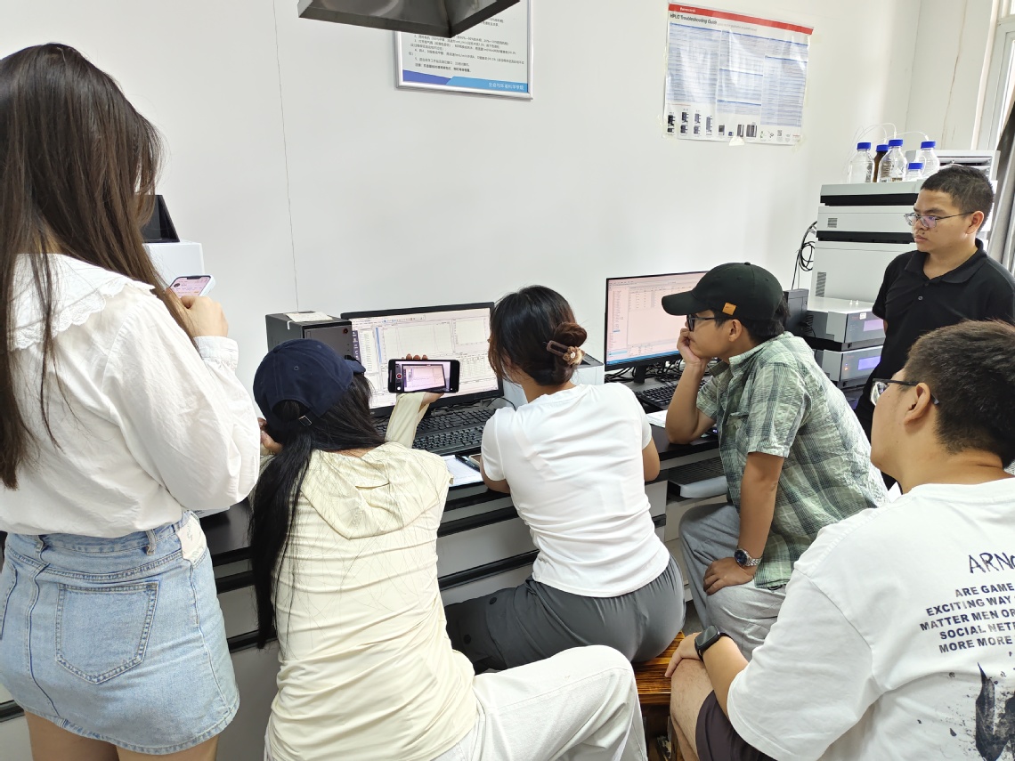 研究生崔佳怡同学现场演示了从开机、排气、方法编辑、序列设定到样品分析的完整流程。同学们参与热情极高,有效提升了独立、规范操作该仪器的能力与信心。