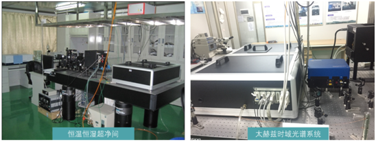 2. 太赫兹实验室:配备有恒温恒湿超净间,拥有太赫兹时域光谱系统3套,可以实现太赫兹光谱的透射、反射和多角度测量。该平台主主要开展太赫兹图像处理的理论与关键技术研究、太赫兹在无损检测、生物医学成像方面的图像处理研究、太赫兹波的传输特性与波束控制理论研究等。