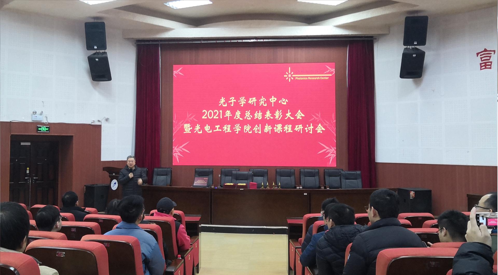 2021年12月21日,光子学研究中心2021年度总结表彰大会暨光电工程学院创新课程研讨会在三亿官方官网三亿(中国)_三亿(中国)东区第三教学教一楼报告厅隆重召开。会议由光子学研究中心主任苑立波教授主持。研究生导师邓洪昌、杨宏艳、邓仕杰、于凌尧、尹君、滕传新、徐荣辉等参加本次会议。特邀王祥书记、秦祖军等老师参加本次会议。来自光子学研究中心的全体博士和硕士研究生参加了本次会议。