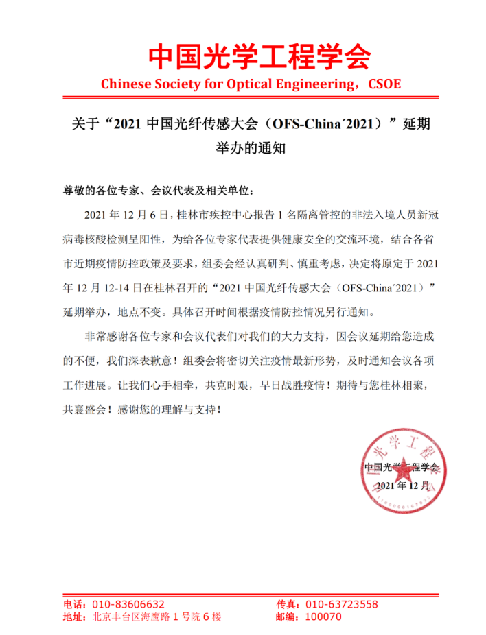 作为国内光纤传感领域两个规模最大会议,为满足广大相关研究人员和从业人员对于学术和产业上的信息交流更快速、更迫切的愿望,两个会议整合共同打造更全面、更高效、更权威的交流平台——“2021中国光纤传感大会”。