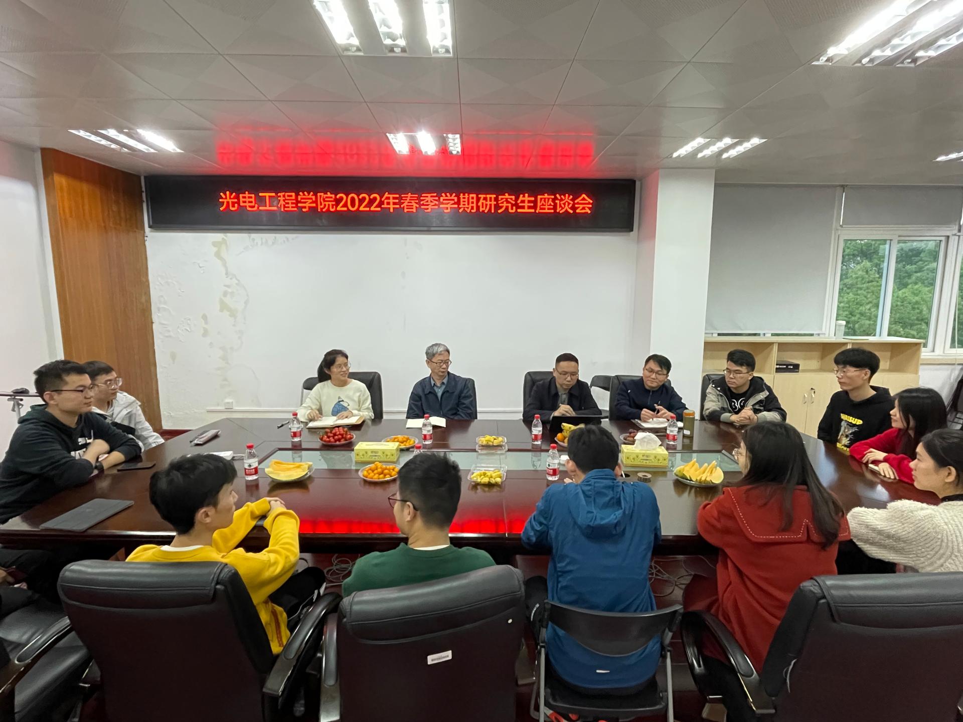 4月18日下午,光电工程学院在金鸡岭校区2301会议室召开2022年春季学期研究生座谈会。学院领导王祥、韩家广、邓洪昌和辅导员及研究生代表参加了座谈。