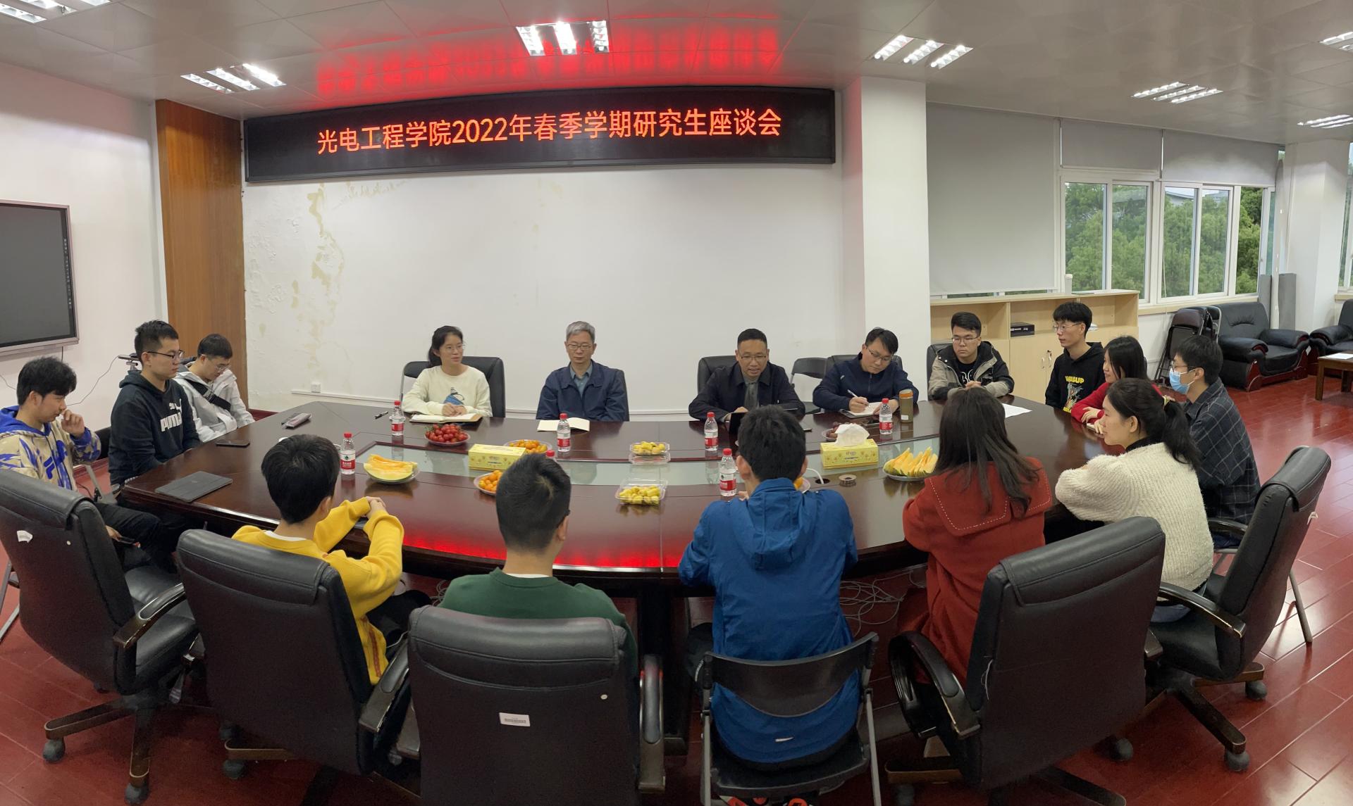 4月18日下午,光电工程学院在金鸡岭校区2301会议室召开2022年春季学期研究生座谈会。学院领导王祥、韩家广、邓洪昌和辅导员及研究生代表参加了座谈。