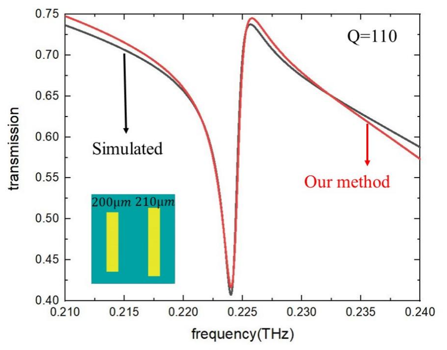 文中用两种连续域束缚态结构(图1)进行仿真,并通过提出的耦合模理论计算验证。通过提取左右两个单独结构的共振频率,损耗,相位等参数(图2),得到整个超表面结构的透射谱线,其计算结果与仿真结果具有很好的一致性(图3)。在不同品质因子Q值的情况下,分别利用文中的理论与之前的耦合模理论(一个明模与一个暗模的耦合,两个明模之间的耦合)进行对比(图4)。文中的耦合模理论即使在很高品质因子的情况下,都可以得到很好的计算结果。