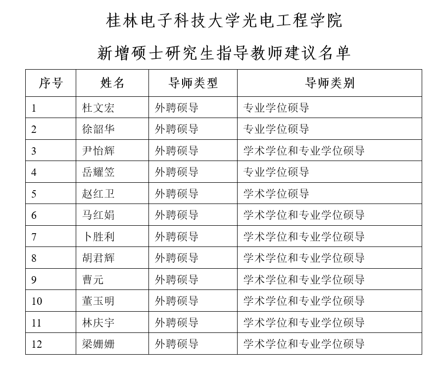 根据《三亿官方官网三亿(中国)_三亿(中国)硕士研究生指导教师遴选办法》的通知(桂电研〔2021〕20号)、《光电工程学院学术学位硕士研究生指导教师遴选标准》(试行)和《光电工程学院专业学位硕士研究生指导教师遴选标准》(试行),经学院学位分委员会审查、投票表决,同意推荐12名硕士研究生导师(具体名单详见附件)。现予以公示,公示期2022年6月10日-6月14日。