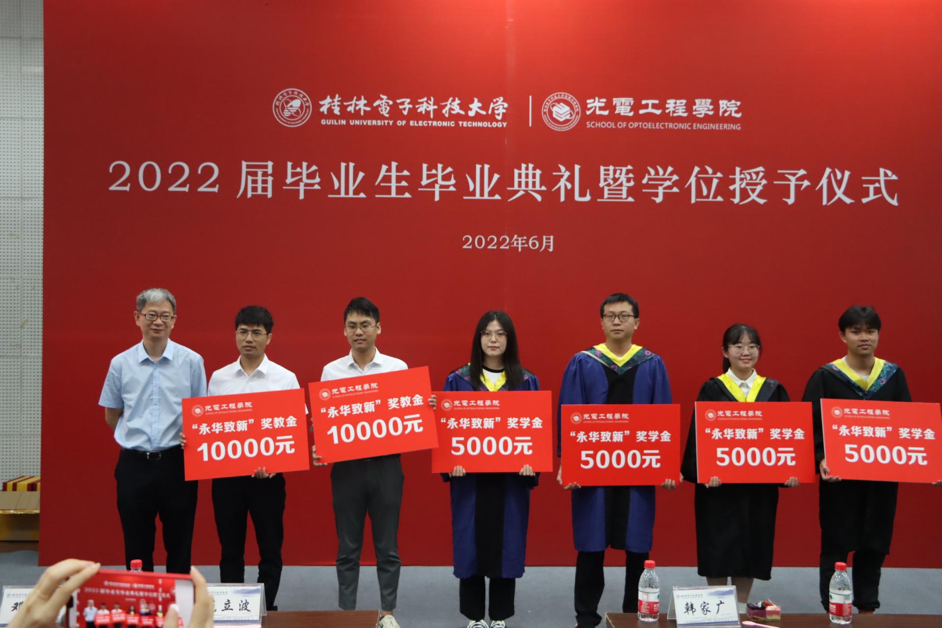 分会场毕业典礼上,学院表彰了2022年光电工程学院“永华致新”奖学(教)金获奖者、2022届“光电之星”优秀毕业生并颁发荣誉证书。韩家广院长希望同学们树立远大理想,明确方向,接续奋斗,做夜空中最亮的星。