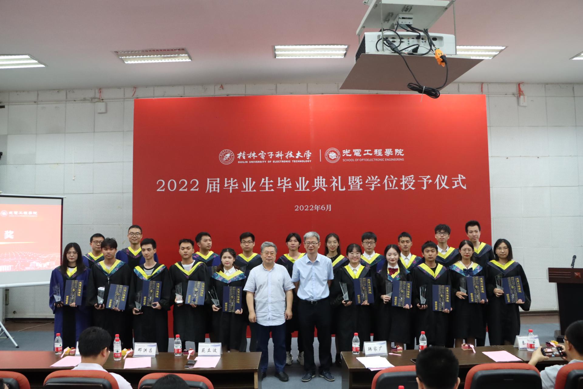 6月24日上午,光电工程学院2022届毕业生学位授予仪式在花江校区重点实验大楼主会场举行,徐华蕊校长为我院2022届本科、硕士毕业生拨穗、授位。随后,学院2022届毕业生毕业典礼在实训楼报告厅分会场举行。学院全体教师、全体2022届毕业生参加典礼,典礼由学院党委书记王祥主持。
