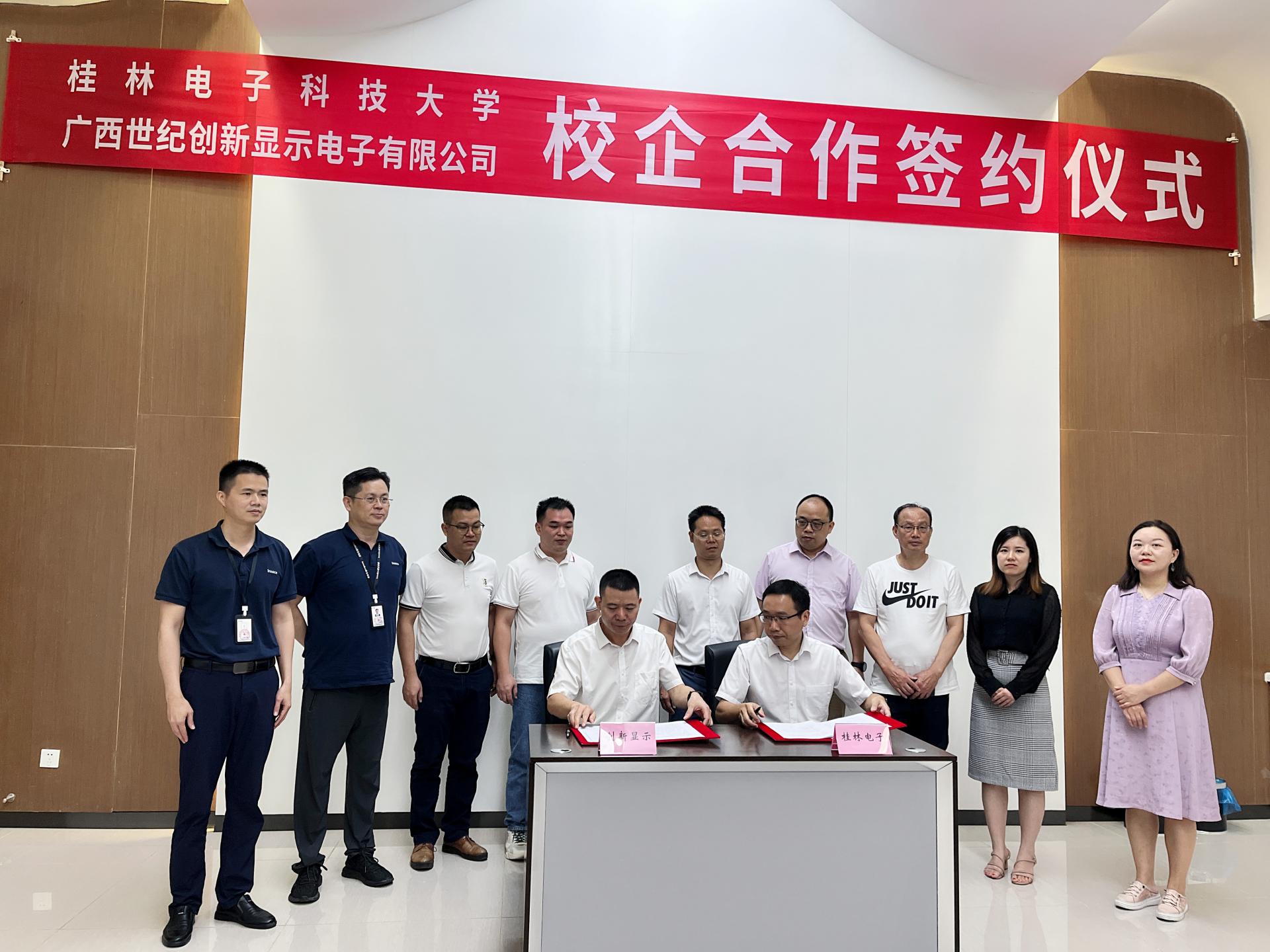 8月2日上午,桂电光电工程学院与广西世纪创新显示电子有限公司在南宁中关村签订“校企合作、协同育人”战略合作协议。学院党委书记王祥、副院长秦祖军、教授级高工曾启林、院长助理银珊、陈乐博士、世纪创新研发中心总监邹锦华、品质总监陈贺铭、厂长黄世强、HRBP经理庄展坤、南宁高新区经济发展局韦柯柯副科长以及双方代表参加了此次签约仪式。