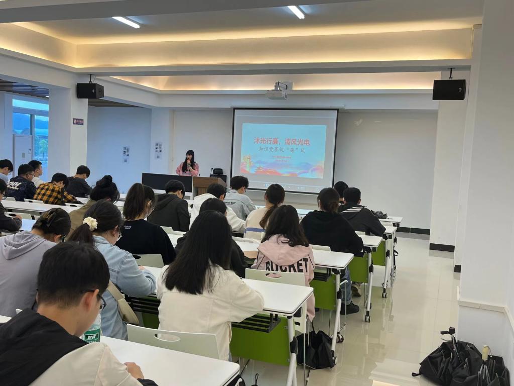 5月10日,光电工程学院“5·10”思廉日“沐光行廉、清风光电”主题党日活动在学生宿舍F区35栋102报告厅开展,光学工程研究生第一党支部、第三党支部参加,并邀请本科2021级各团支部共同参与。
