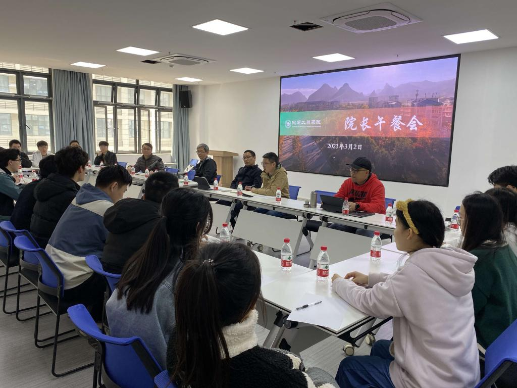 2023年3月2日中午,光电工程学院2023年第一期院长午餐会在花江智慧谷2号楼311会议室举行。本次午餐会以“考研经验分享”为主题。学院领导班子、毕业班辅导员以及2023届考研学生代表参加了活动,活动由学院党委书记王祥主持。
