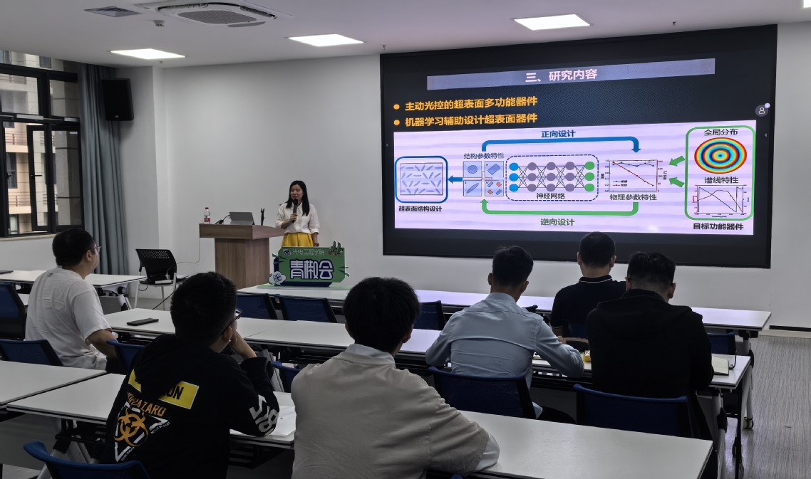 11月3日下午,光电工程学院以青年教师学术交流带动学院研究生培养,学院青年教师交流会(简称“青椒会”)组织了第二期交流活动,银珊副教授做了以“太赫兹主动光控超表面多功能器件”为主题的学术报告并组织了研讨。