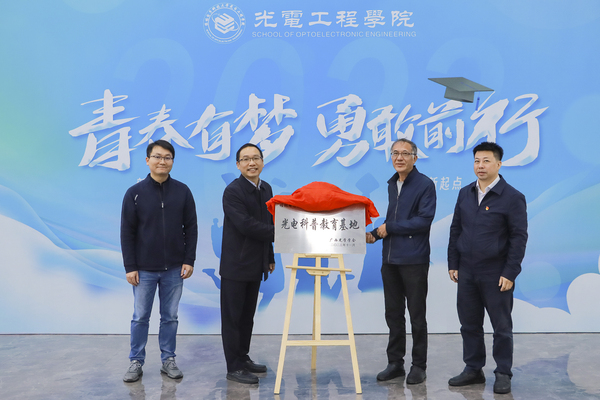 11月8日,广西光学学会认可的光电科普教育基地在光电工程学院揭牌,自治区科协学会部副部长韦旭、广西光学学会理事长伍浩成、光电工程学院党委书记王祥、副院长邓洪昌出席活动并为基地揭牌。