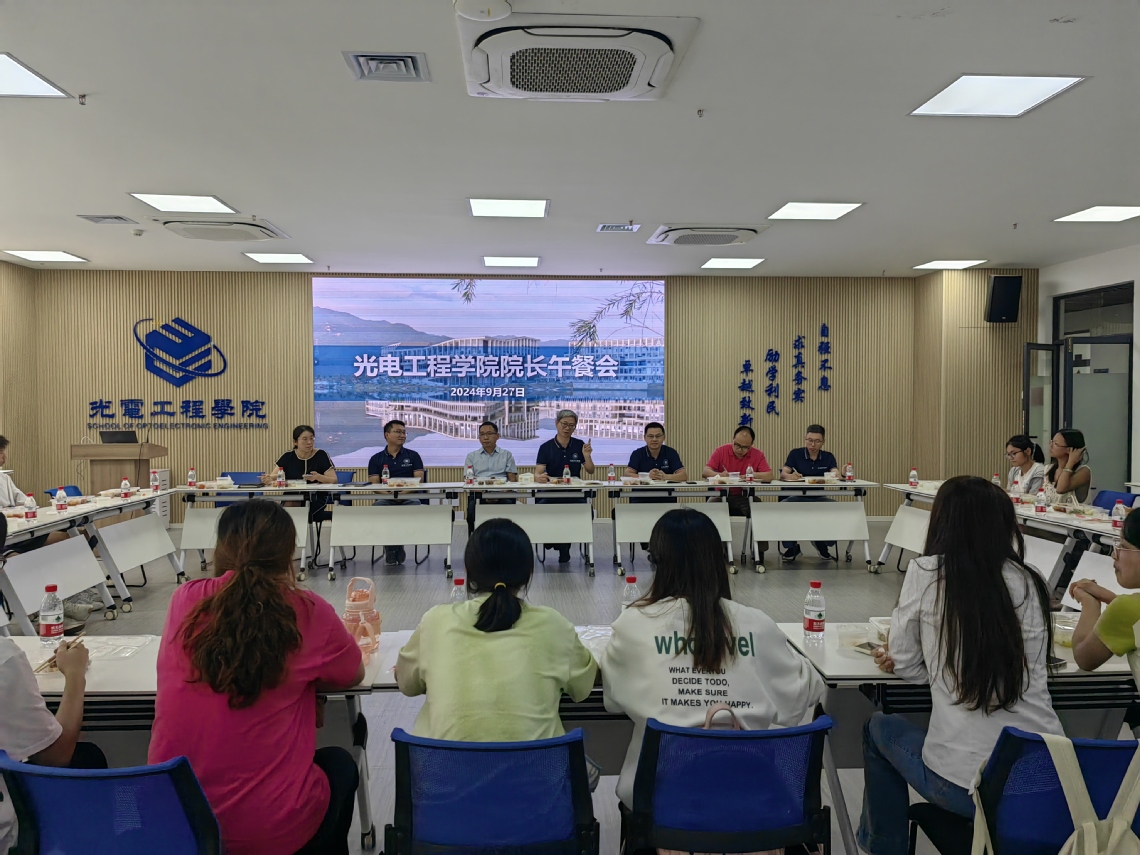 9月27日,光电工程学院2024年秋季学期第一期院长午餐会在花江慧谷2311会议室举行,学院领导班子与2023级本科生代表共进午餐,围绕学院创新人才培养议题围桌畅谈。