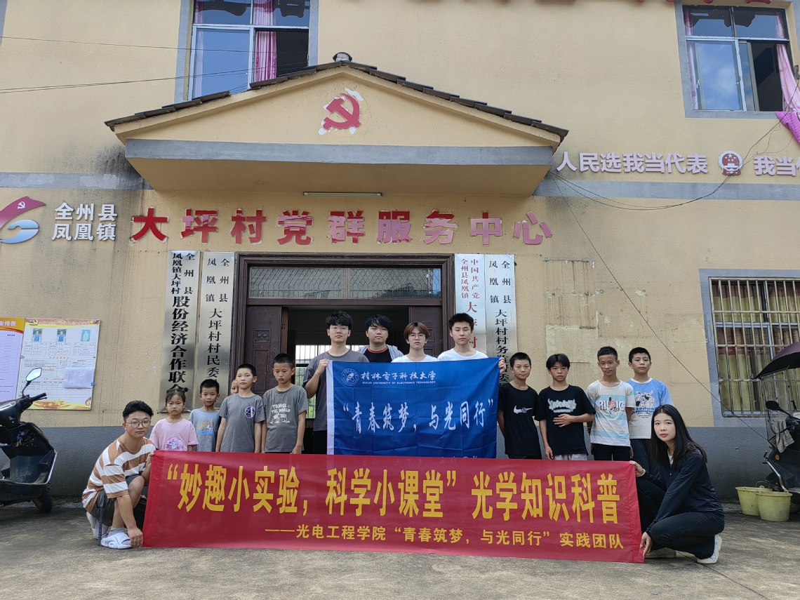 7月4日,光电工程学院团委组织本科生社会实践团队前往广西全州县凤凰镇大坪村开展“青春筑梦,与光同行” 光学知识科普教育活动。
