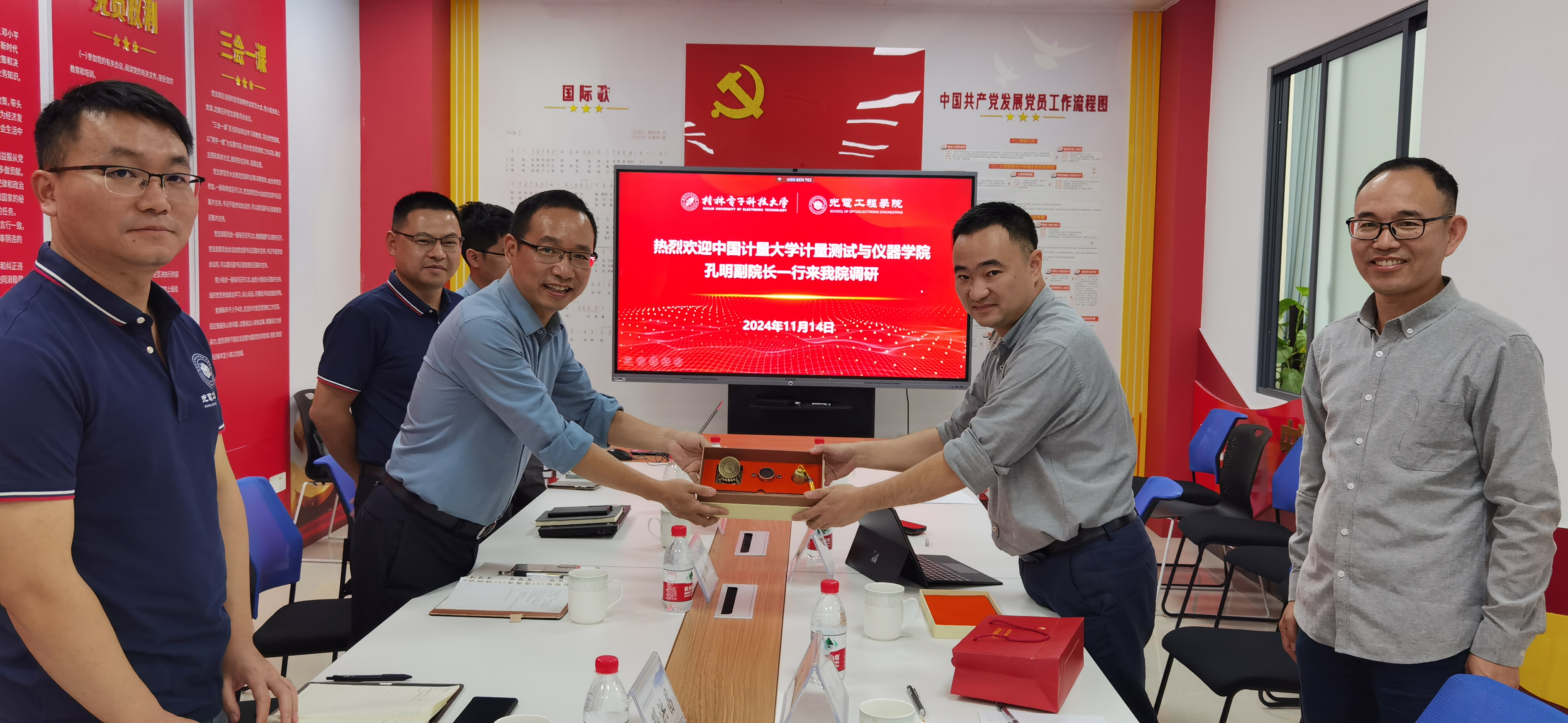 11月14日,中国计量大学测试与仪器学院孔明副院长、张宝武副教授和陈飞研究生主管来我院参观调研,学院党委书记王祥、副院长叶松、副院长邓洪昌等人参加了座谈交流。双方围绕学科和专业建设、研究生培养、人才引进培育等方面进行了深入的交流,并达成了常态化交流和合作指导意向。