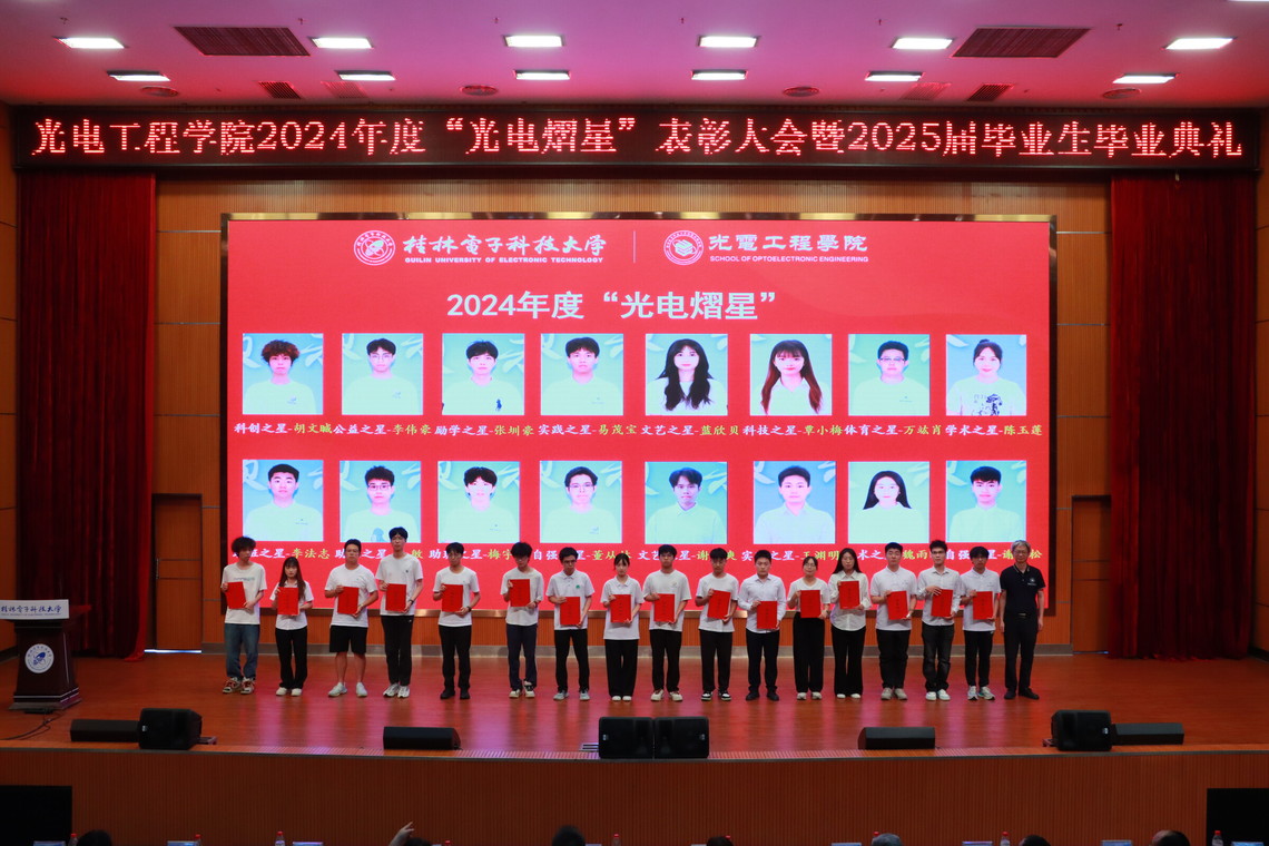 6月6日下午,光电工程学院2024年度“光电熠星”表彰大会暨2025届毕业生毕业典礼在花江校区图书馆报告厅举行。全院师生齐聚一堂,共同见证荣誉时刻,并为即将扬帆起航的2025届毕业生送上最诚挚的祝福。
