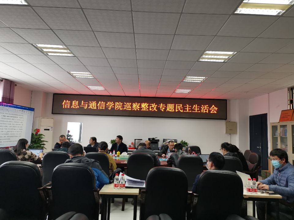 按照学校第三届党委第三轮巡察整改工作要求,3月25日上午,信息与通信学院在科技楼411会议室召开巡察整改专题民主生活会,学院领导班子成员、学院党委委员、各系主任、各教工党支部书记以及学院两办人员参加会议,会议由学院党委书记仇洪冰主持。