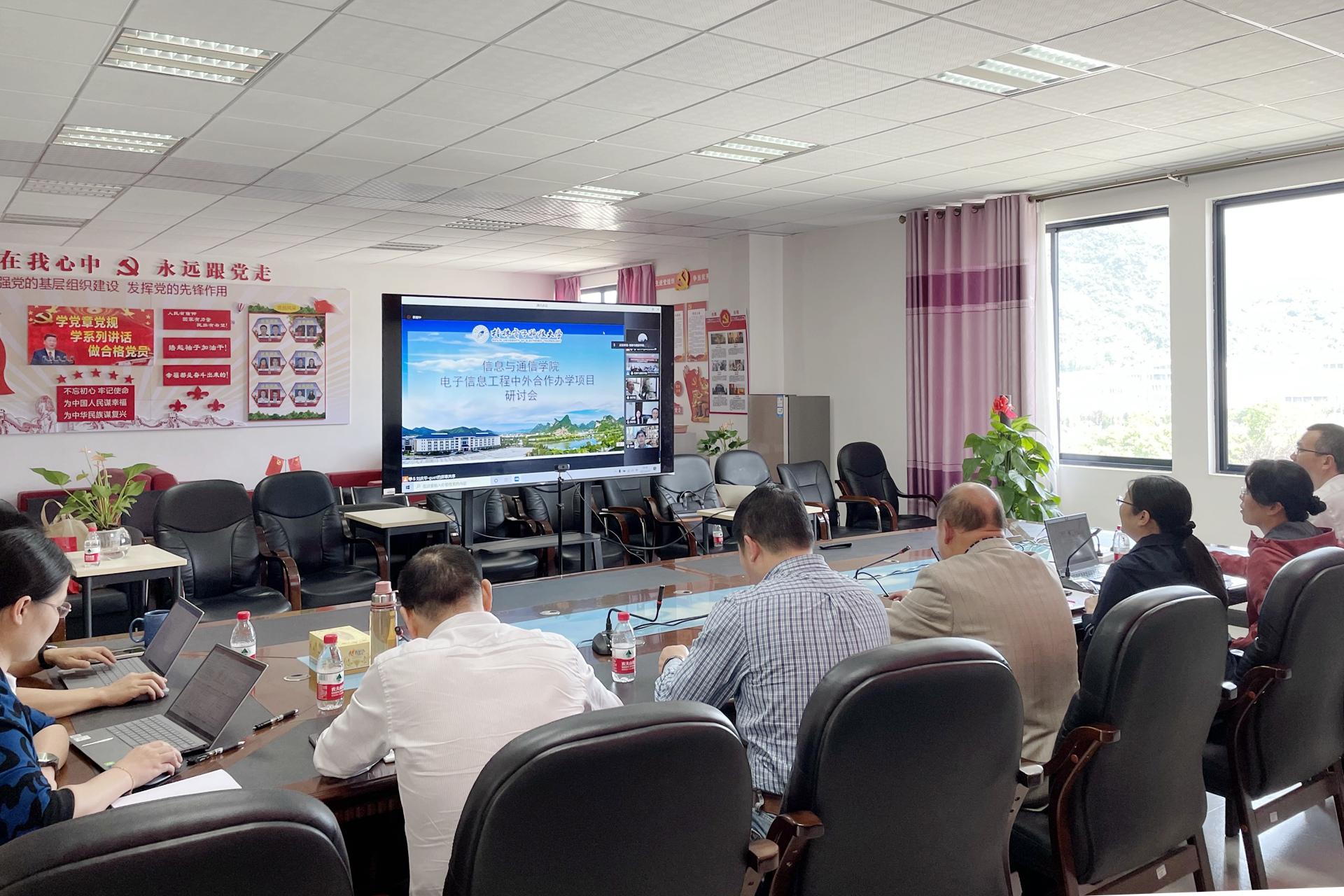 5月17日,信息与通信学院在科技楼411举行电子信息工程专业中外合作办学项目研讨会。此次研讨会邀请了西安电子科技大学通信工程学院副院长顾华玺、西安邮电大学电子工程学院院长杜慧敏及相关专家对学院的中外合作办学项目进行了线上指导。招生办公室主任徐志超、学院党委书记仇洪冰、院长李海鸥及学院全体领导班子参加了研讨会。
