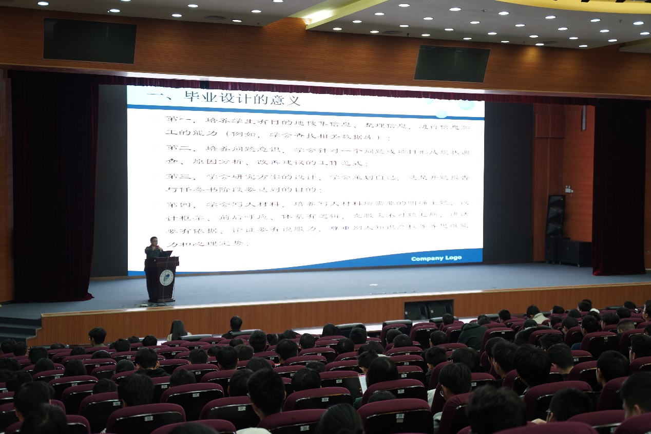 张法碧向同学们介绍了本科毕业设计的重要意义,强调了论文写作中必须遵守的工作纪律,并勉励大家认真做好毕业论文。而后对毕设选题、开题答辩、中期检查、设计说明书撰写、论文答辩五方面进行了详细的讲解;针对论文撰写格式,对学生们提出规范性的要求并总结了往届毕设(论文)过程中所遇到的问题及改进措施,也为学生们提供了丰富的经验作为学习和参考。最后,张法碧对学生开展了学术道德与学术规范意识教育,他强调,同学们既要在思想上保持高度重视,做到严格遵守学术诚信,有底线思维,同时还要在撰写中注意把控各个时间节点,按时保质保量完成毕设(论文)工作。