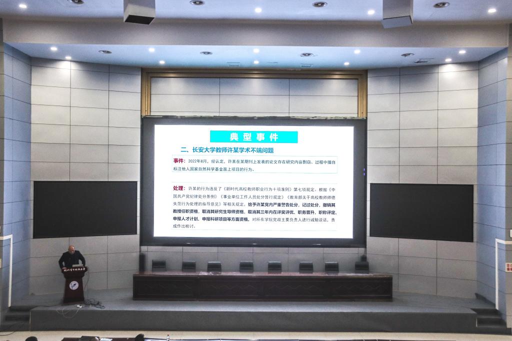 张智昱首先通报了教育部公开曝光第十二批7起违反教师职业行为十项准则典型案例,与大家一起学习了《新时代高校教师职业行为十项准则》。