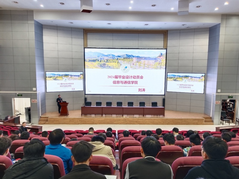 为激励全体2024届本科生明确毕业设计的目标和方向,引导大家做好充分准备,积极投入毕业设计的各项工作。3月26日下午,学院于信息与通信学院大楼报告厅召开了2024届毕业设计动员大会。传达学习学校关于毕业论文工作通知精神,会议由院长助理刘涛老师主讲,毕业班辅导员、2024届全体毕业生参加本次会议。