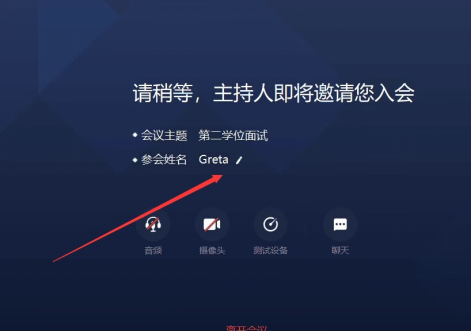 1、面试开始前,请考生提前进入腾讯会议等待室,并将名字改为“面试序号+姓名”,如“01号张三”,待轮到考生面试时,由各组面试秘书邀请考生进入开始面试。如下图所示:
