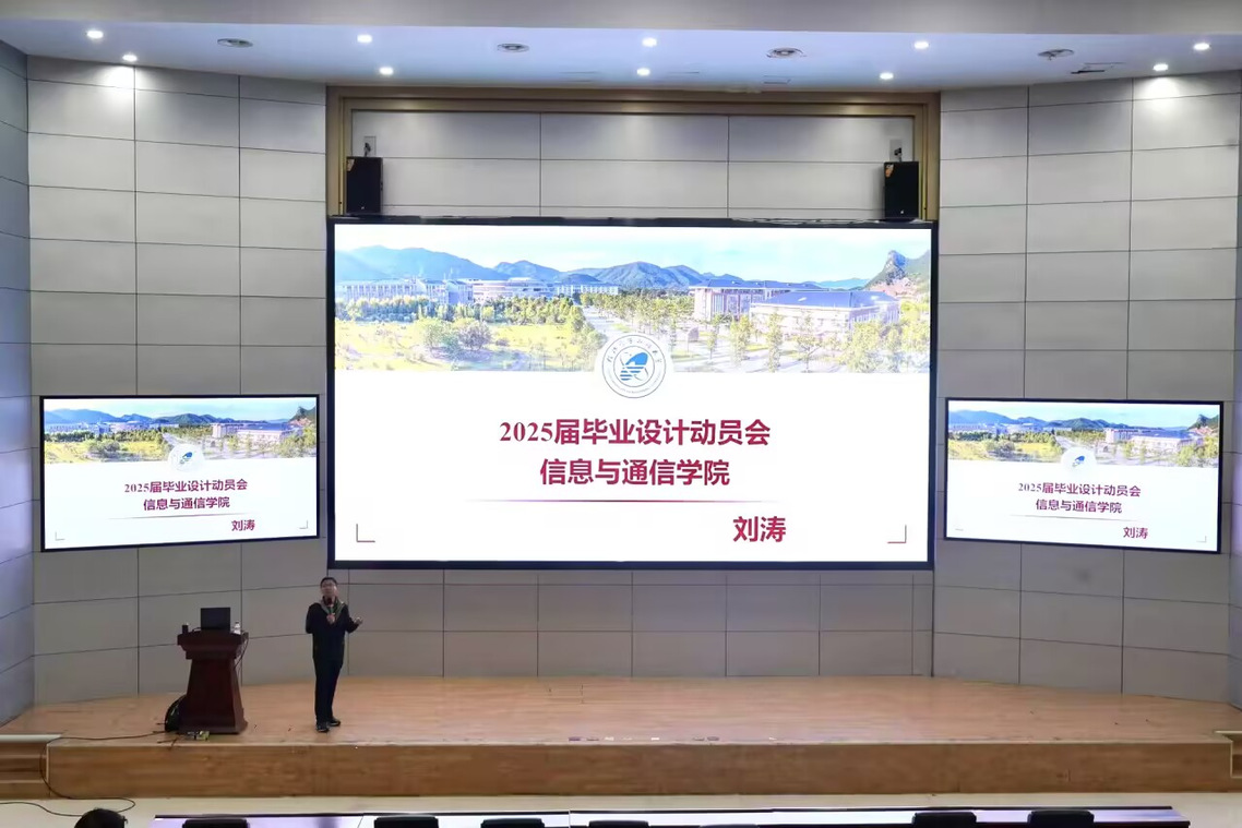 为切实提高我院本科生毕业设计质量,引导2025届本科生明确毕业设计的目标和方向、做好前期筹备工作,12月4日下午,学院于信息与通信学院大楼报告厅召开2025届毕业设计动员大会。会议由刘涛老师主讲,毕业班辅导员、2025届全体毕业生参加本次动员会。