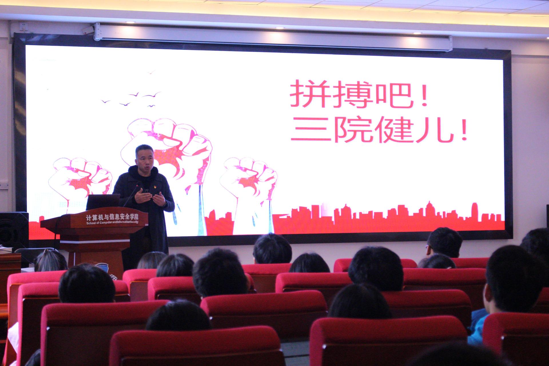 10月21日,我院于5506举行第十六届校运会出征动员大会,学院党委书记文辉、党委副书记肖亮、田径队教练韦朝贵、各年级辅导员以及田径队全体队员参加动员会,并隆重举行授旗仪式。