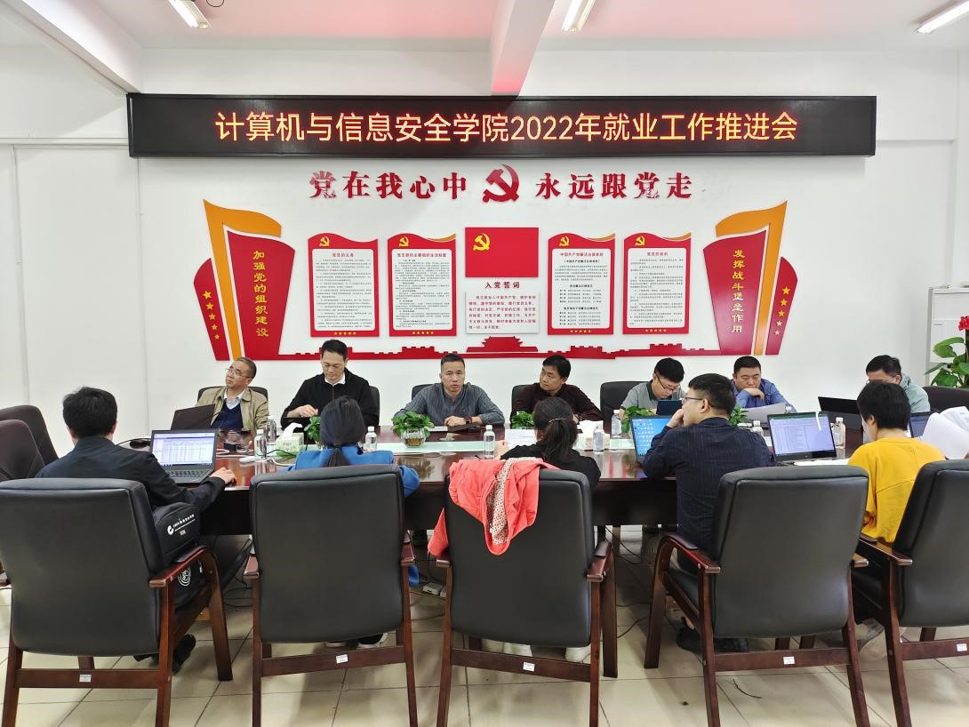 5月12日下午,计算机与信息安全学院在花江校区5503会议室召开2022年就业工作推进会,学院党委书记文辉、院长刘建明、副书记肖亮、各教研室主任、各专业负责人以及毕业班辅导员参加会议。