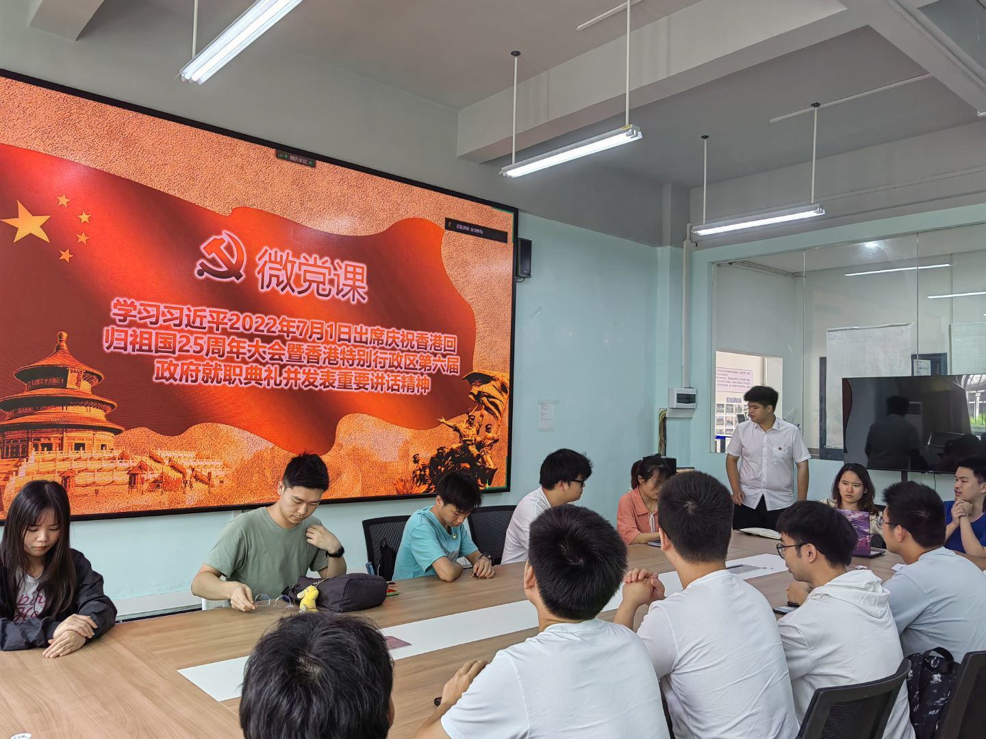 党支部以“三个一”形式开展了丰富多彩的党日活动。首先,全体成员肃立合唱了红色歌曲《我和我的祖国》;随后集体朗诵了红色诗歌《沁园春·长沙》和《七律·长征》;最后由党支部书记韦金梅同志以微党课的形式,带领学习“三亿官方官网三亿(中国)_三亿(中国)在出席庆祝香港回归祖国25周年大会暨香港特别行政区第六届政府就职典礼发表的重要讲话精神”。