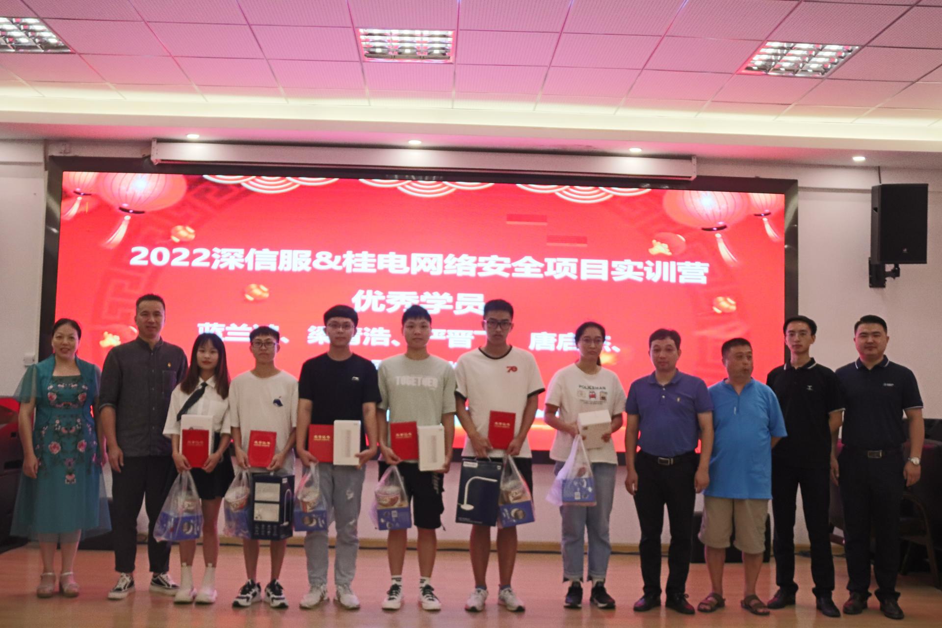 2022年7月11日,为期 15 天的“2022深信服&桂电网络安全项目实训营”圆满结束,并举行了隆重的结营仪式。本次实训课是由深信服科技股份有限公司与我院共同举办的,2019级信息对抗技术专业38名同学和信息安全专业6名同学参加了实训。15天的课程涵盖网络安全设备介绍、网络安全等级保护、安全解决方案、网络协议分析、网络安全应急响应等内容,深信服公司还给同学们介绍了行业热点趋势,对同学们进行了就业指导。