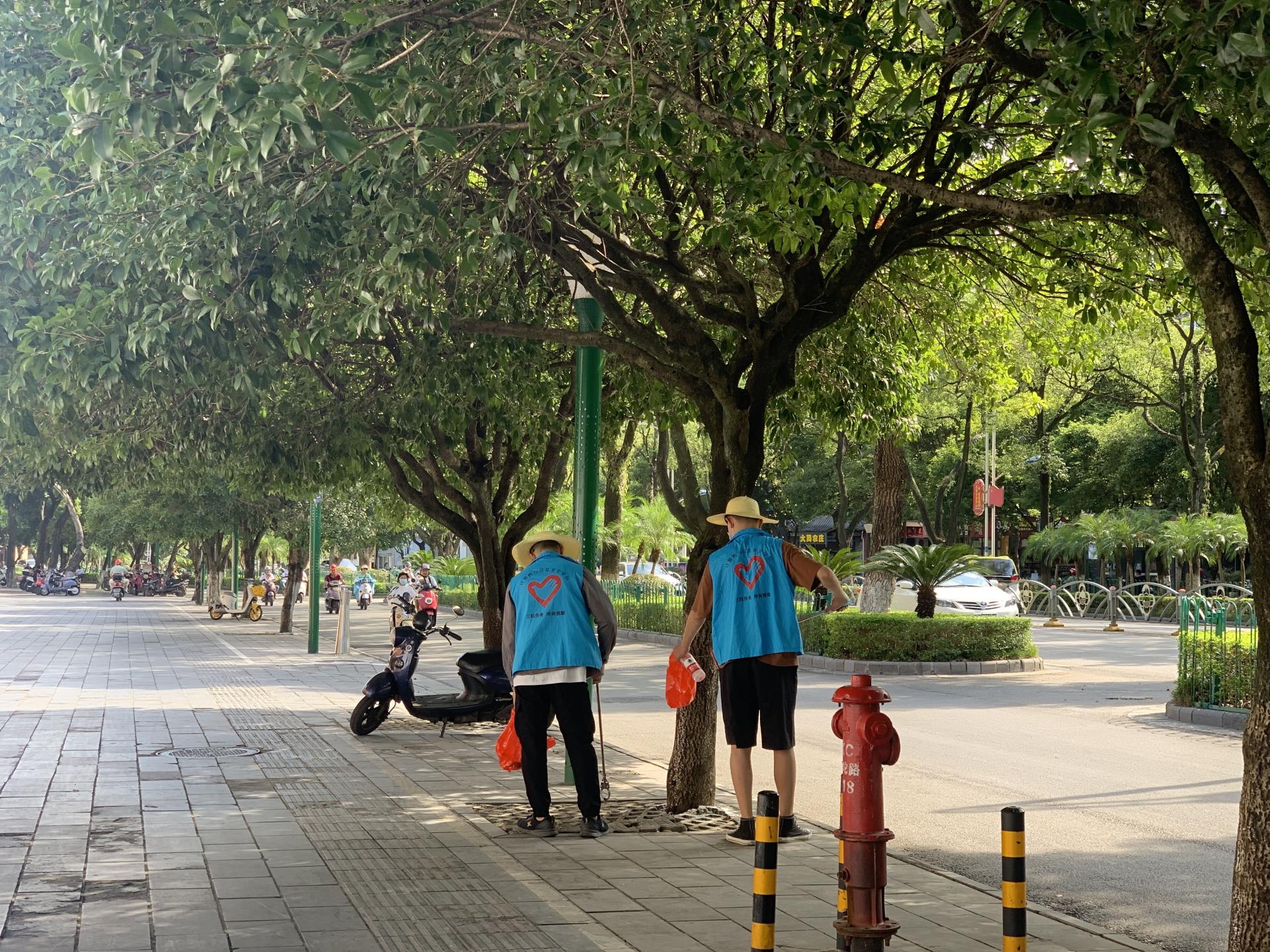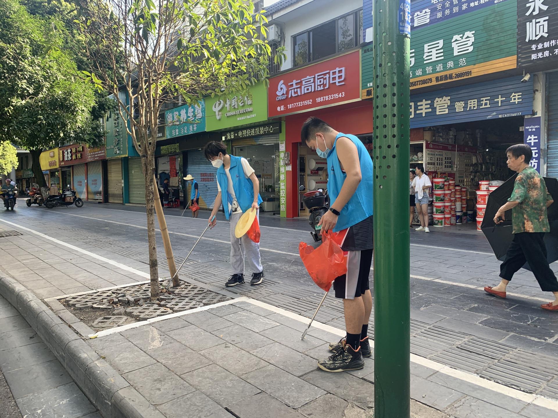师生志愿者积极配合城管、环卫开展包联路段的环境卫生工作;配合交警、城管开展路段交通秩序的维护工作;配合文明办等单位开展不文明行为的劝导工作等,不仅展示了当代大学生以身作则的精神风貌,更为桂林市顺利通过复查测评做出积极贡献。