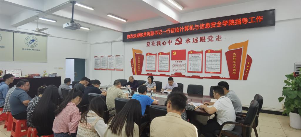 2022年10月24日下午,校党委副书记陈贵英一行到我院进行调研。校党委常委、组织部部长陈松青,副部长陈志新陪同调研,我院党员领导班子,各支部书记参加调研会。