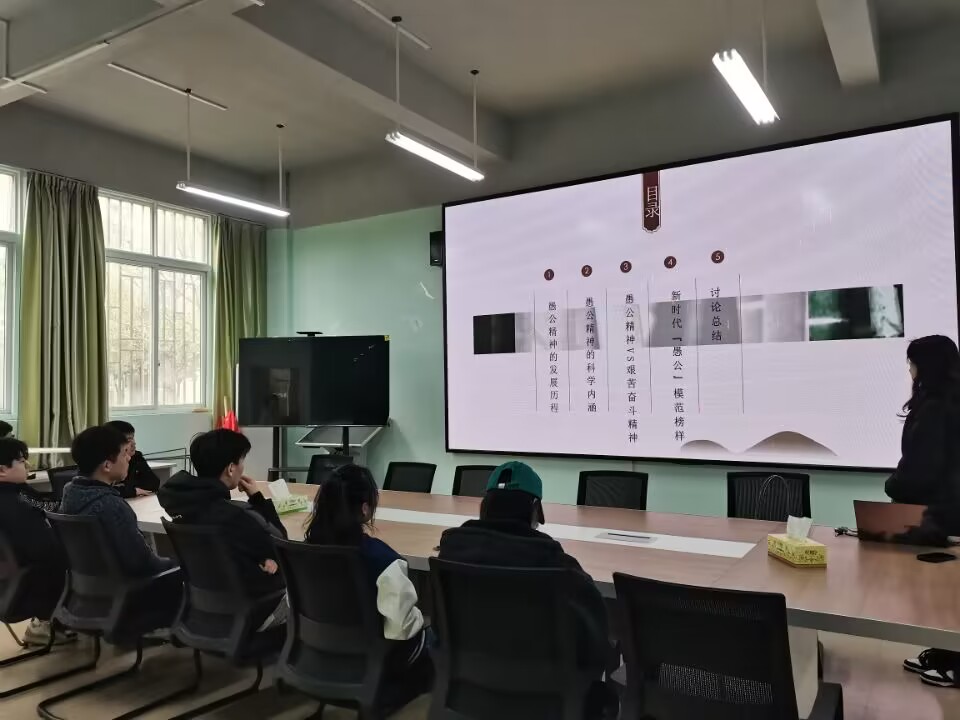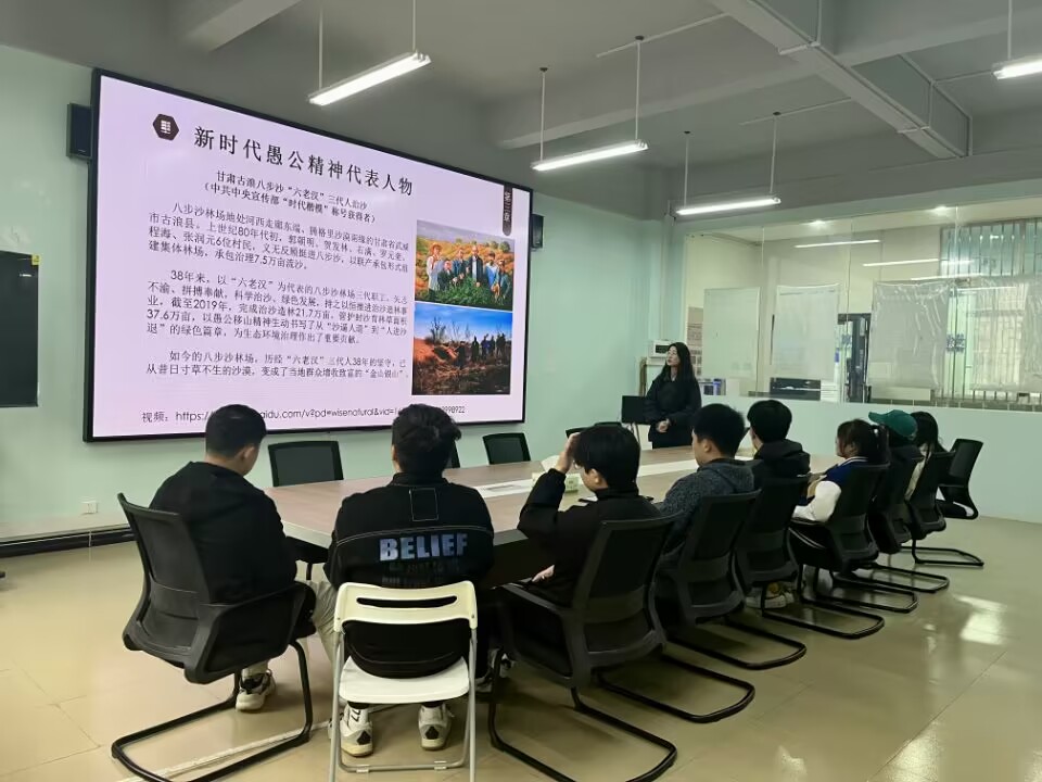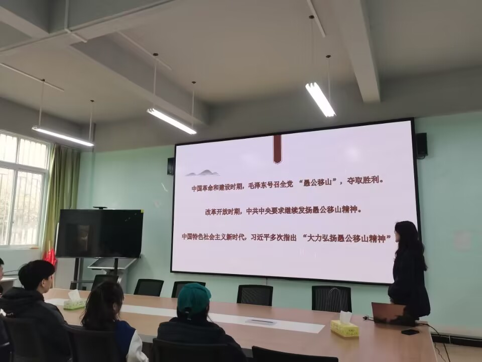 会上,刘思凡同志从“愚公移山精神的发展历程”、“新时代愚公移山精神的科学内涵”、“愚公移山精神与艰苦奋斗精神的区别与联系”三个方面对新时代愚公移山精神进行了生动形象的阐述。并向大家分享了新时代愚公移山精神代表甘肃古浪八步沙“六老汉”三代人治沙的故事,希望支部同志能够以此为榜样,树立青春之志,肩负起时代赋予的使命,用实际行动践行新时代愚公移山精神!