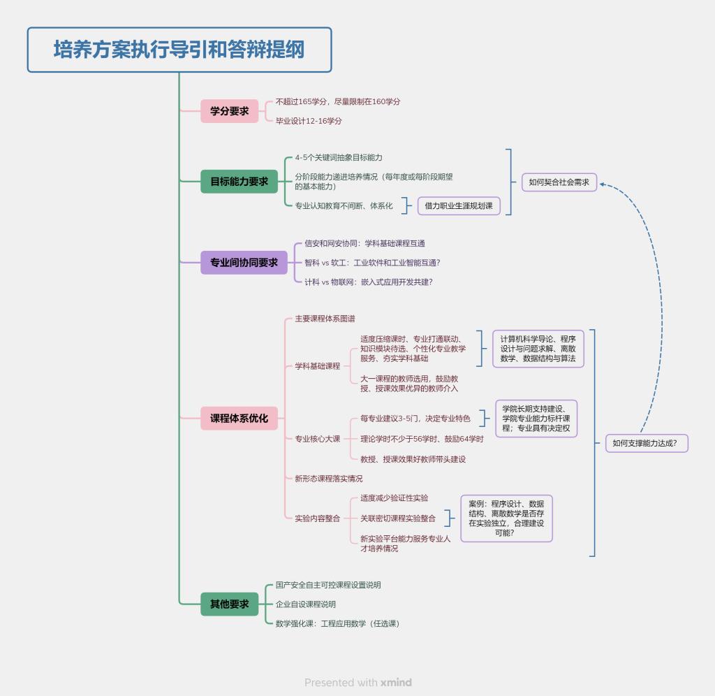 各专业负责人从专业人才总体培养目标抽象和阶段化能力达成、专业核心课程体系及对目标能力的支撑、新形态课程在培养方案中的落实情况、国产安全自主可控类课程引入情况、新实验平台对实践与人的支撑作用、专业间人才培养协同要求等层面汇报了培养方案修订工作。专业全体教师参与本专业人才培养方案答辩全过程,一方面集思广益,更好地推动培养方案优化工作;另一方面让各专业老师在答辩过程中形成共识和合力,确保培养方案的落地实施。