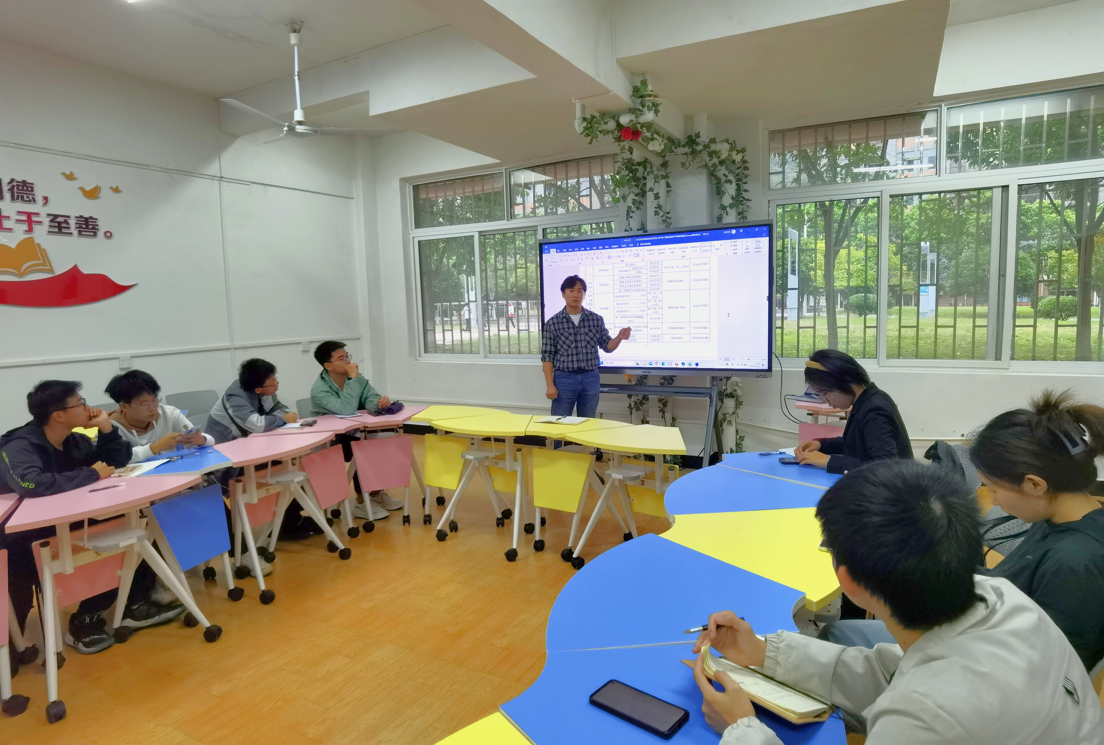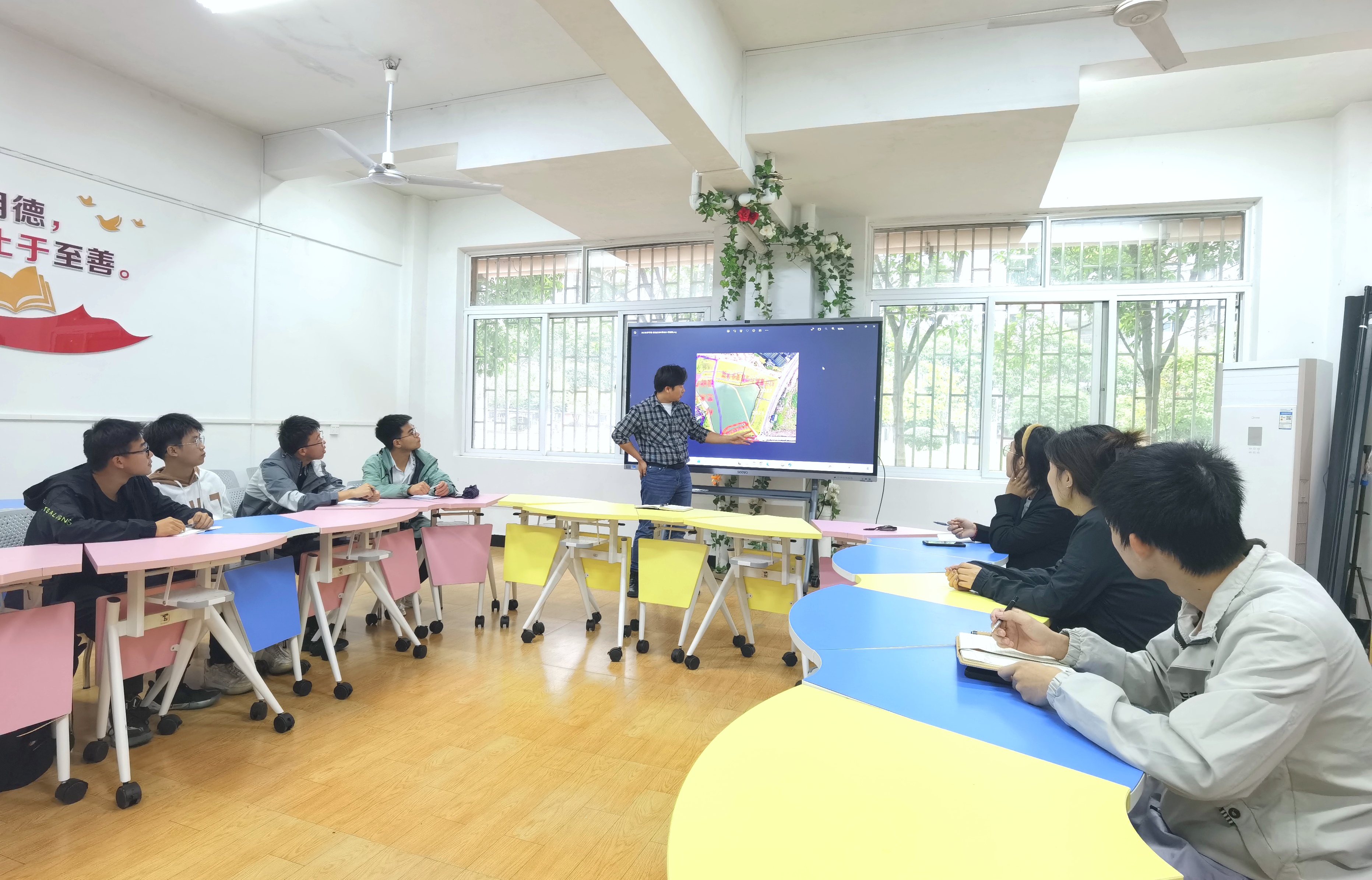 10月11日,我院在学生宿舍D区25栋105导师工作站召开劳动教育工作研讨及推进第二课堂系统使用交流会议,各年级辅导员和学生负责人参加会议,韦顺忠主持会议。