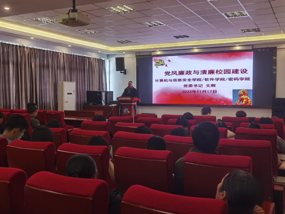 2023年11月17日下午,我院在花江校区5503会议室召开学院大会,会上学院党委书记文辉同志作题为《党风廉政与清廉校园建设》的专题党课。