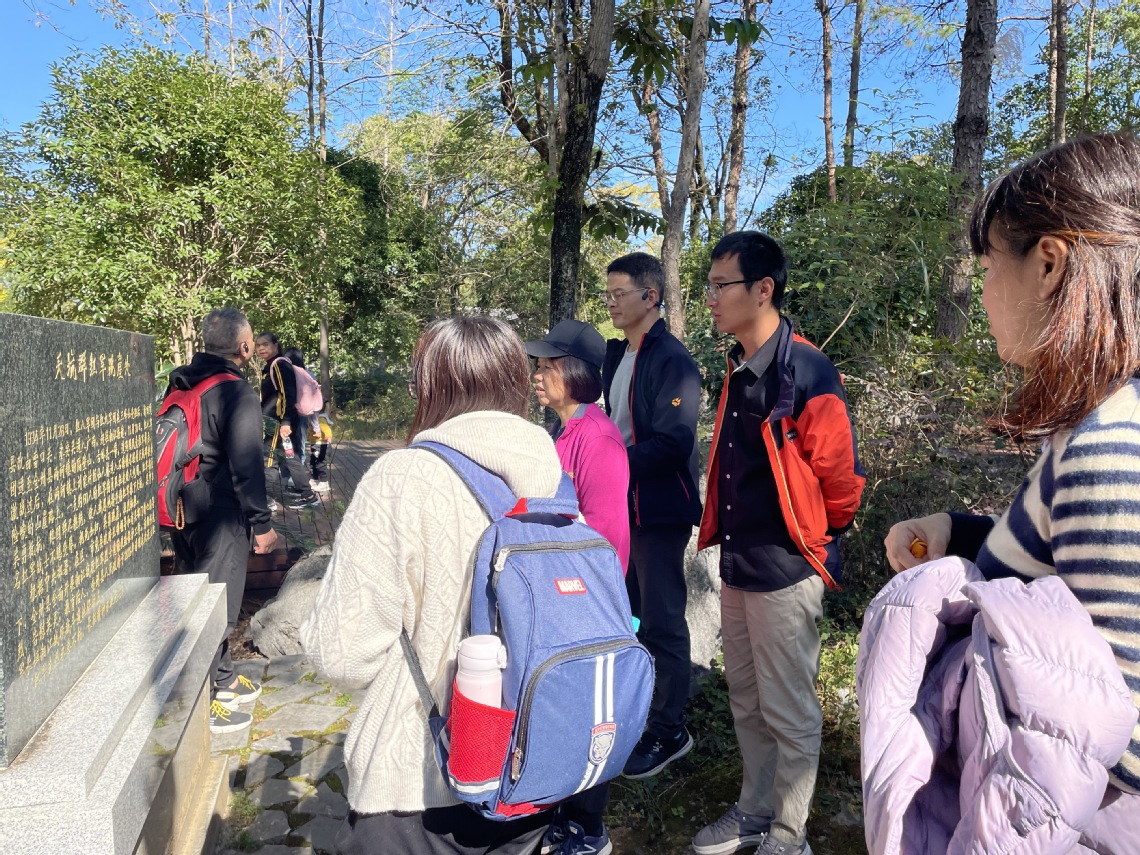 首先,参加活动教师前往我院驻村第一书记韦松磊同志工作所在地-水澄村,实地走访韦松磊同志工作、住宿环境,了解其开展的乡村振兴工作内容以及工作进展。接着全体教师前往村中“红军跳崖殉难处”进行学习教育,韦松磊同志向大家介绍关于1934年11月下旬,红八军团和红九军团在全州奋勇抗敌以及红军伤员被敌人残忍推下天坑,其中3名红军战士不堪受辱,英勇跳崖,壮烈牺牲的故事。听了英雄事迹,大家深受感动,备感今天的幸福生活来之不易,更加坚定立德树人,做好本职工作的信心和决心。