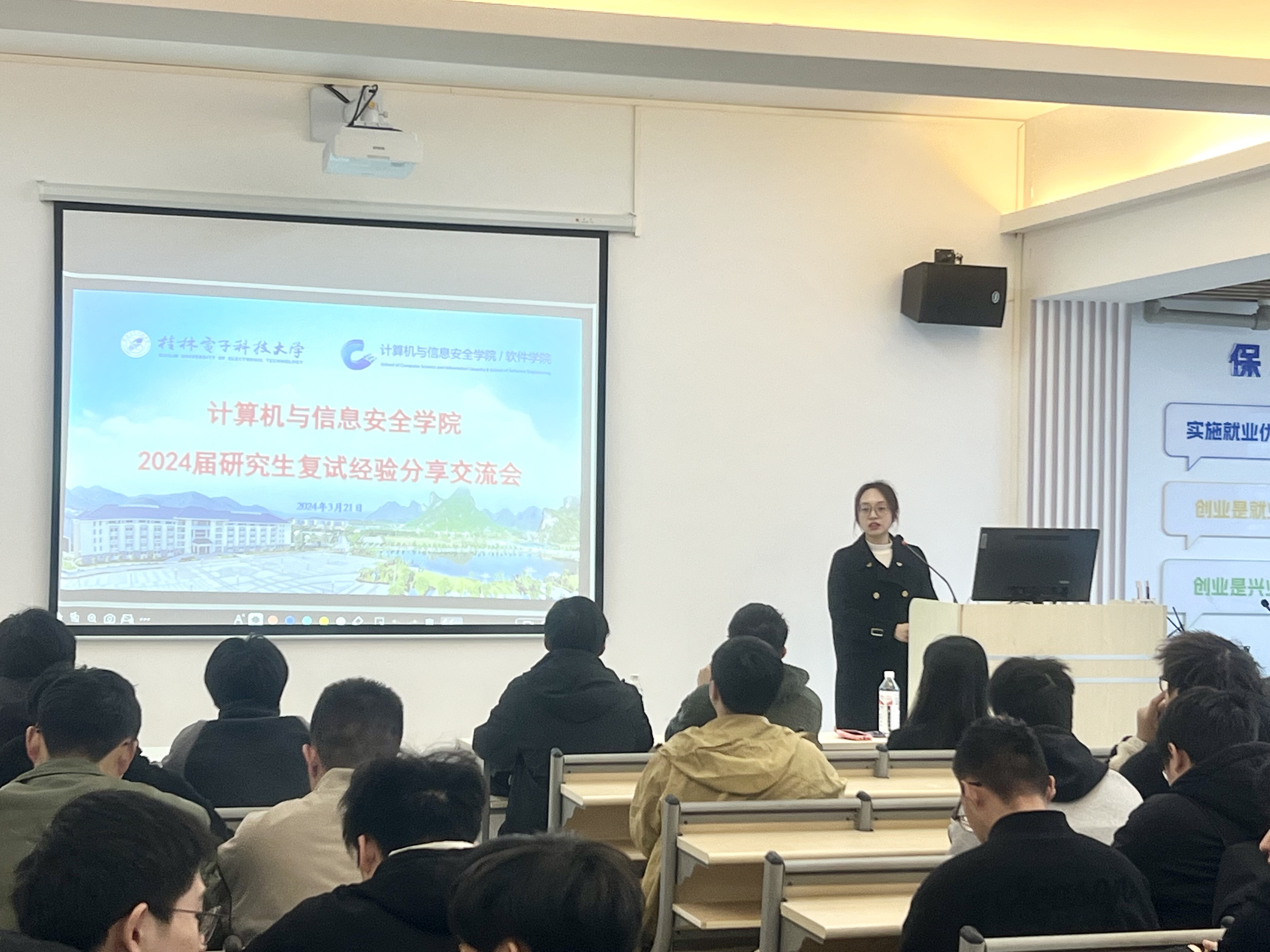 3月21日,计算机与信息安全学院在溶苑39栋103就业报告厅开展2024届考研复试经验分享交流会。毕业班辅导员李向敏、23级优秀研究生代表、毕业年级进入研究生复试本科生参加。
