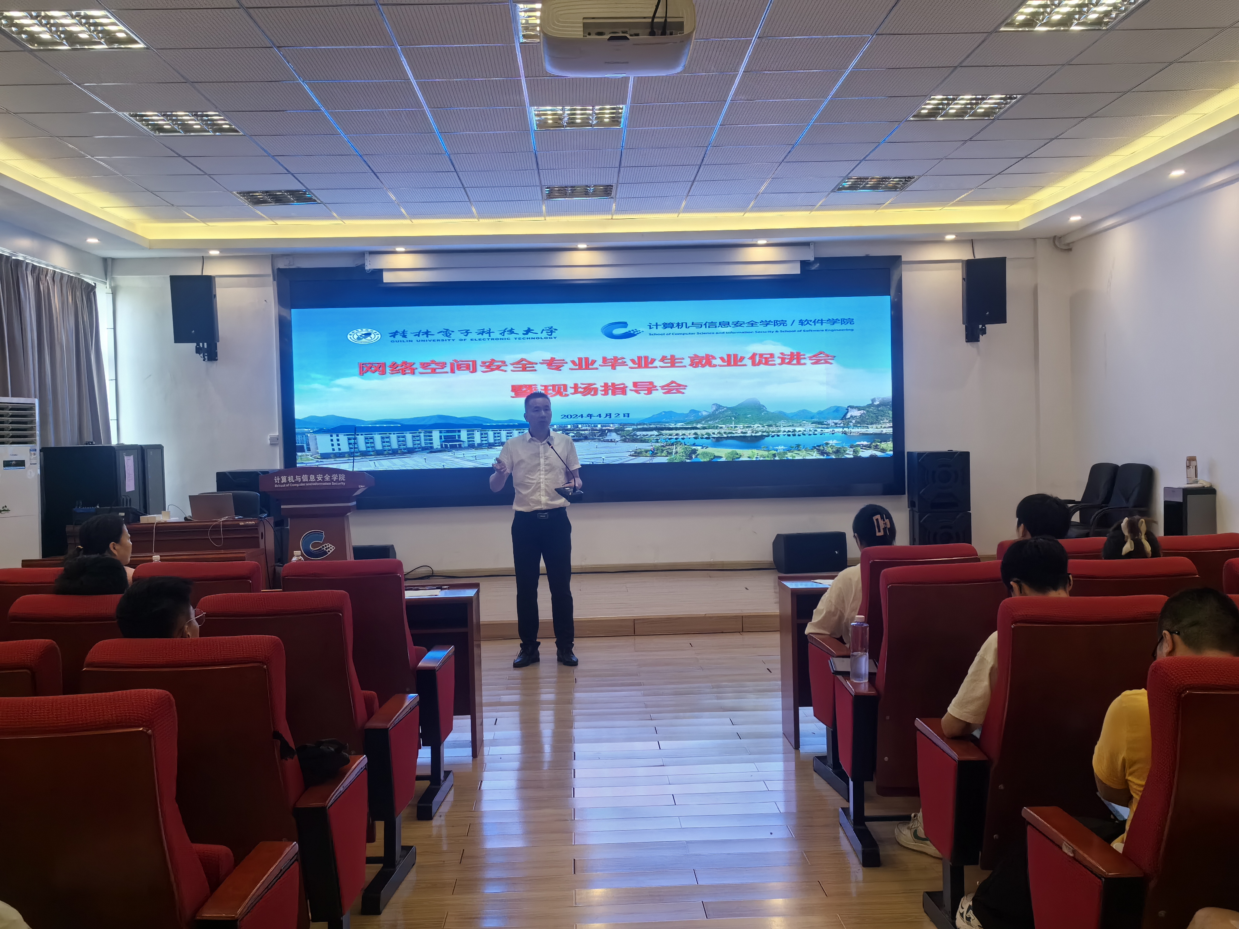 4月2日,计算机与信息安全学院在5503会议室举行网络空间安全专业毕业生就业促进会。学院党委书记文辉、党委副书记刘堂宇、网络空间安全专业负责人陶晓玲、部分专业教师、毕业班辅导员参加会议。
