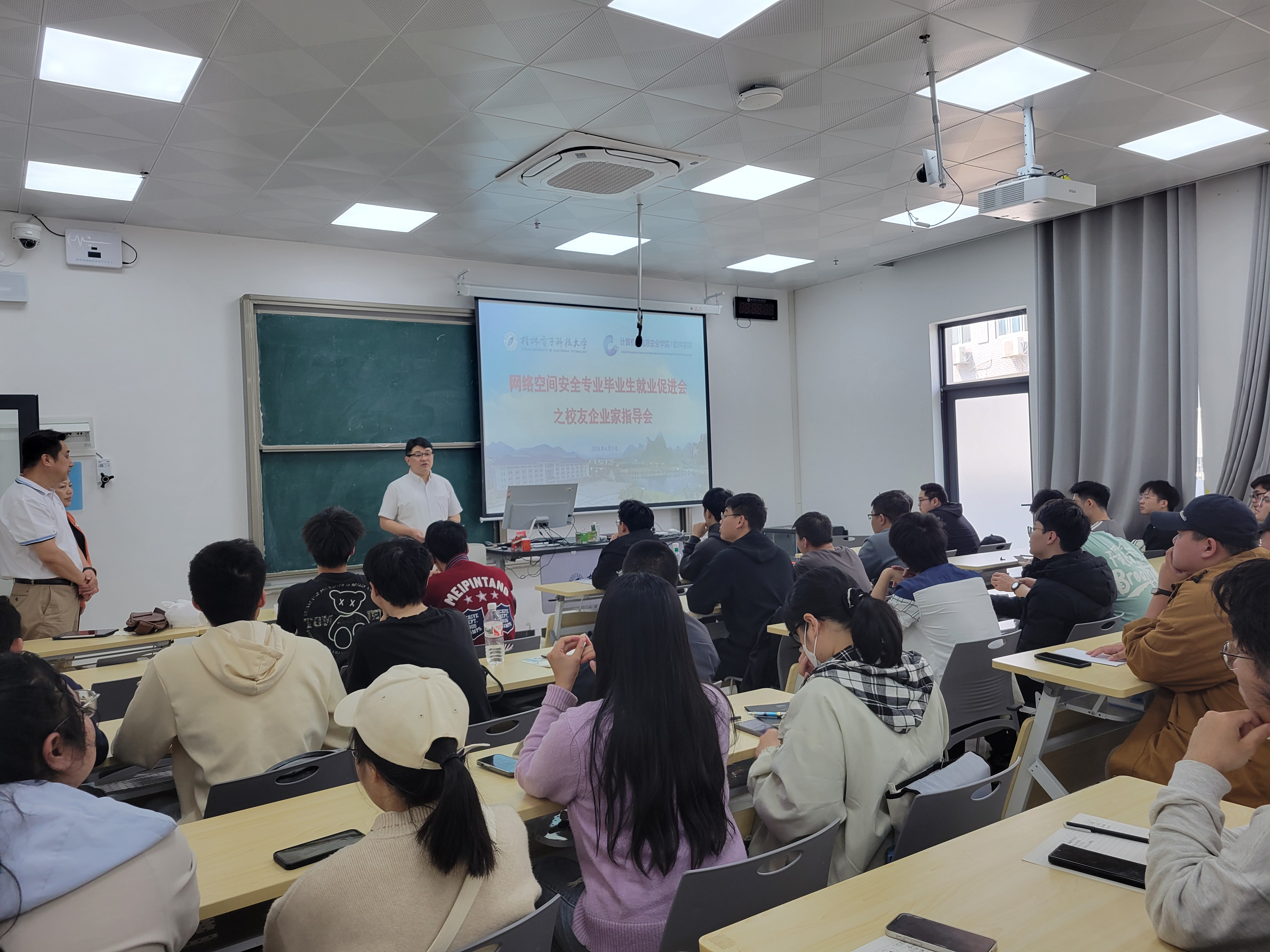 4月10日,学院在文科楼249开展网络空间安全专业就业促进会,特邀92级校友企业家钱浩,面向2024届本科毕业生开展就业指导。学院党委副书记刘堂宇、网络空间安全专业负责人陶晓玲、毕业班辅导员李向敏、高炜参加会议。