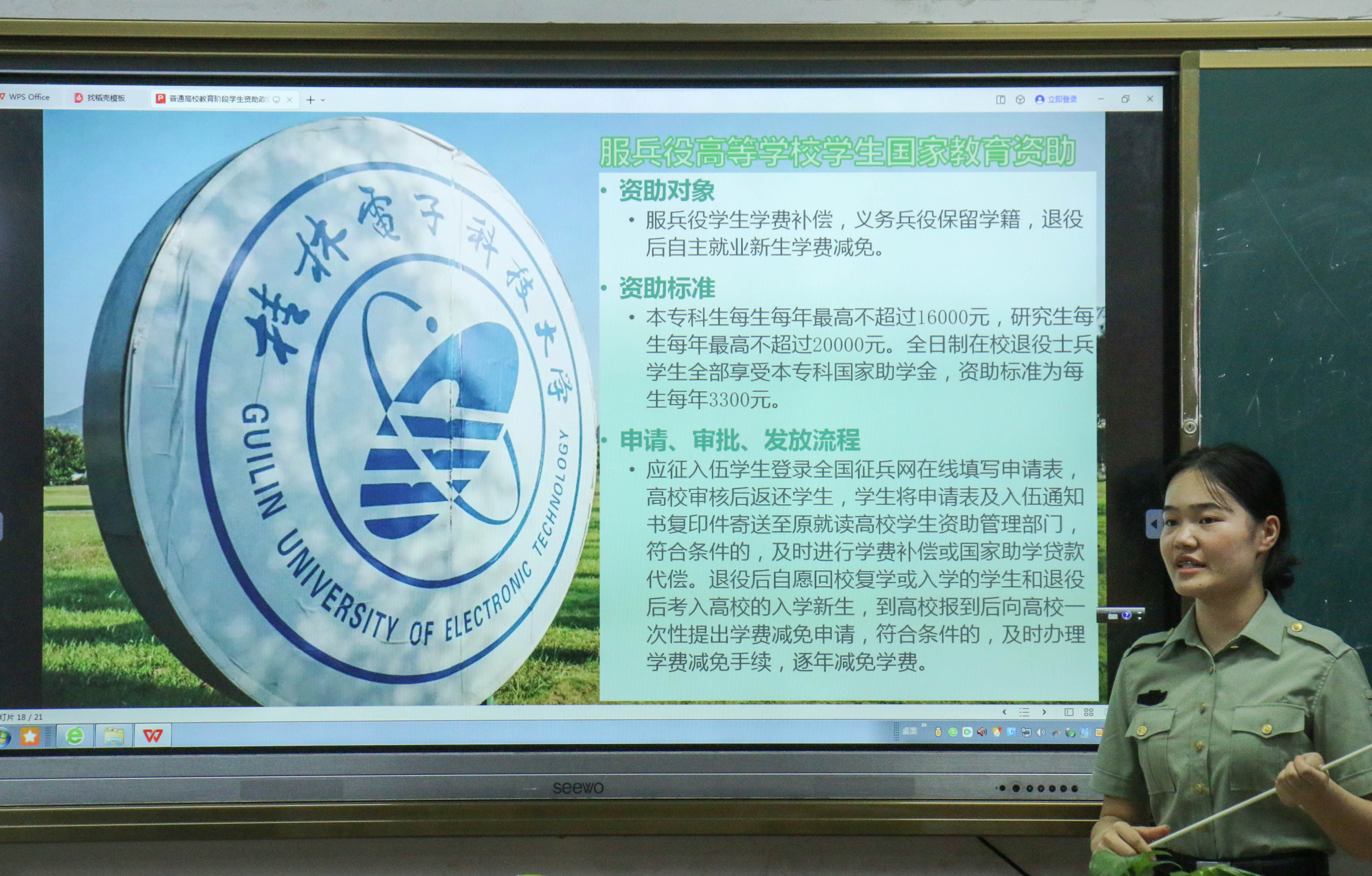 宣讲过程中,黄玉燕详细介绍了各项资助政策的内容。其中包括家庭经济困难大学生入学资助、国家助学贷款、服兵役高等学校学生国家教育资助、自治区人民政府奖学金、三亿官方官网三亿(中国)_三亿(中国)学生奖助学金政策。黄玉燕还跟同学们分享了自己精彩的军旅生涯,鼓励同学们珍惜时光、努力学习,乘着资助政策的东风,实现梦想、报效祖国。