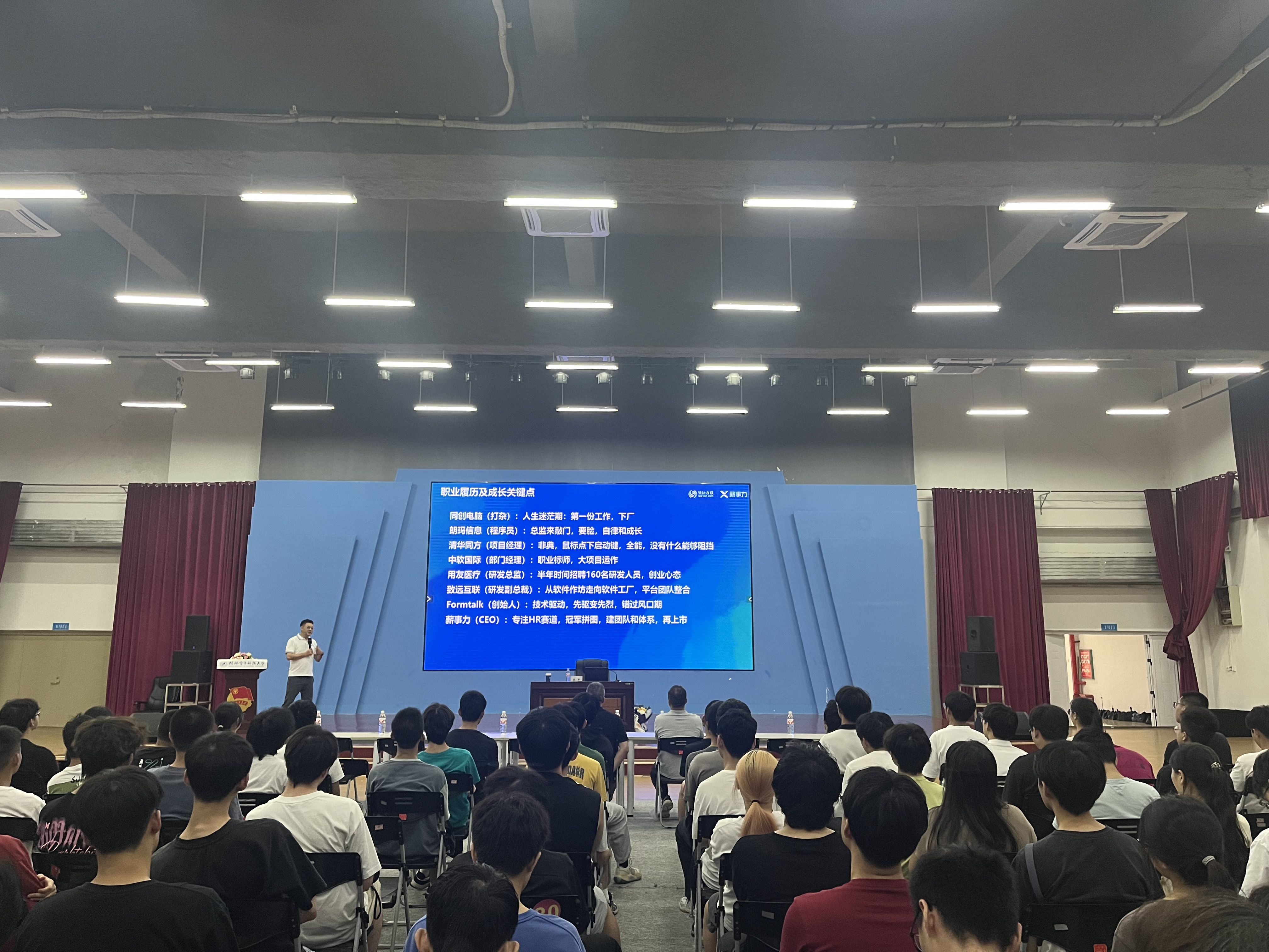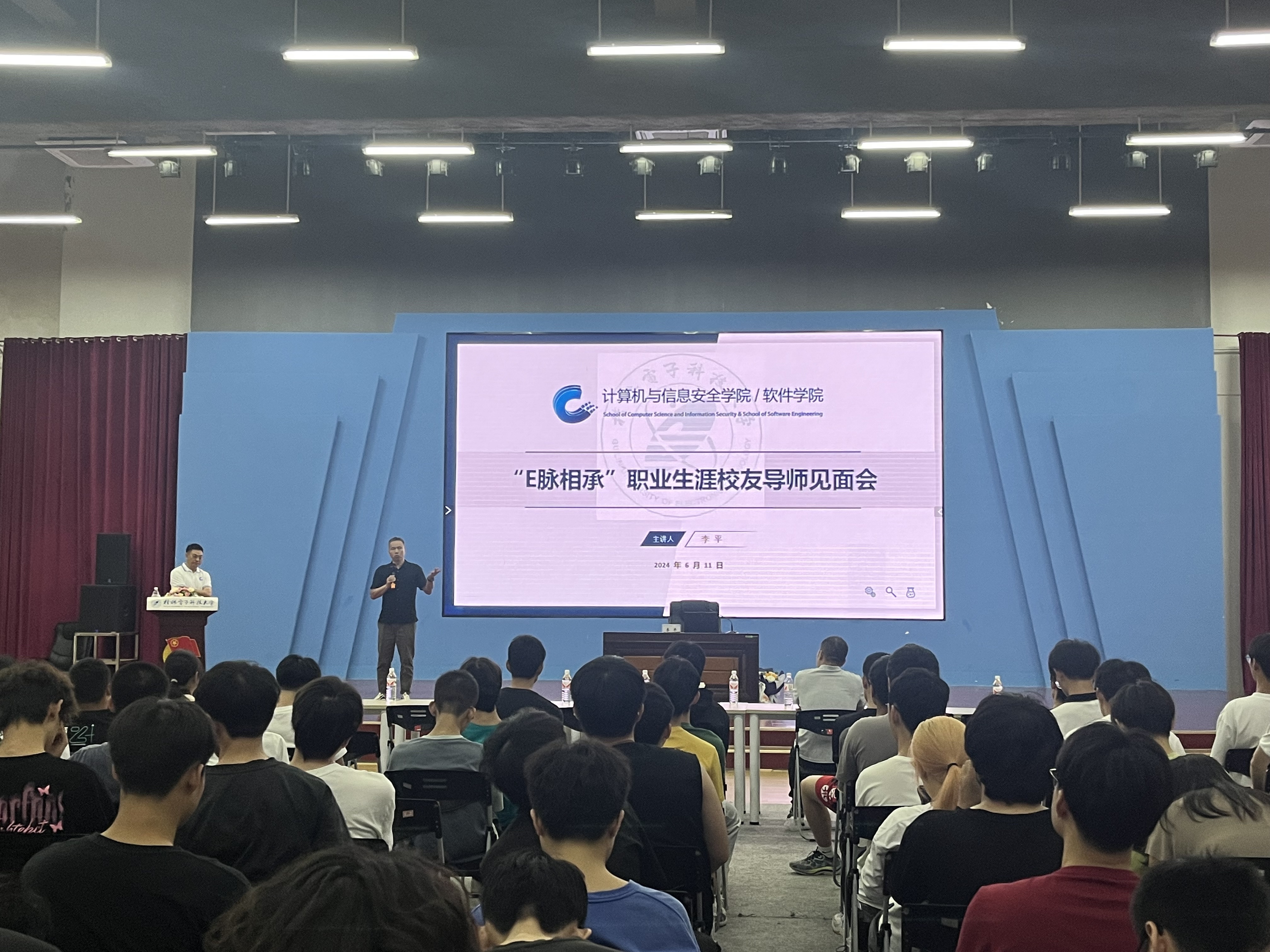 6月11日,我院在大学生活动中心演艺厅开展职业生涯讲座,我院95级校友、23003503班职业生涯校友导师李平、学院党委书记文辉、副书记刘堂宇、年级辅导员及班级同学参加活动。