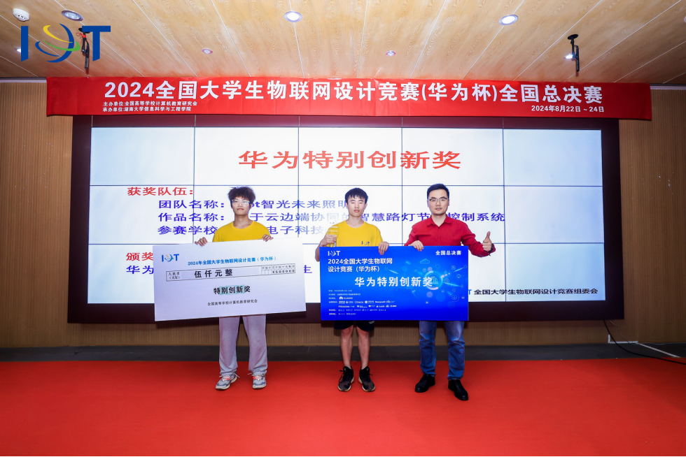 8月22-24日,在湖南大学举办的全国大学生物联网设计竞赛(华为杯)全国总决赛,本届大学生物联网设计竞赛是深入贯彻党的二十大精神,深入实施科技兴国战略、人才强国战略、创新驱动发展战略的生动实践;赛事规模再创新高,仅华中及西南分赛区,参赛高校多达803所,参赛队伍3266支、指导教师3163人、参赛学生14461人。在本届竞赛中,三亿官方官网三亿(中国)_三亿(中国)的学子表现优异,刷新了历史成绩,荣获全国一等奖1项、二等奖1项,取得了学校在该赛事中的最佳成绩。其中,计算机与信息安全学院陶晓玲老师指导的项目《基于云边端协同的智慧路灯控制系统》荣获全国一等奖,陈俊彦老师和雷晓春指导的项目《基于华为loT云平台的车间生产安全管理系统》荣获全国二等奖。此外,陶晓玲老师指导的计算机与信息安全学院本科生李松阳、冯胜杰、陈莹莹组成的团队从全国220支队伍中脱颖而出,斩获华为特别创新奖(全国唯二),实现了新的历史突破。
