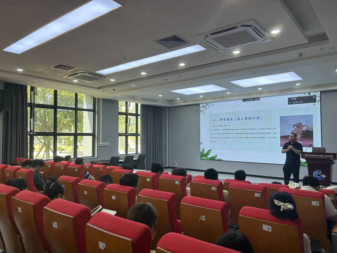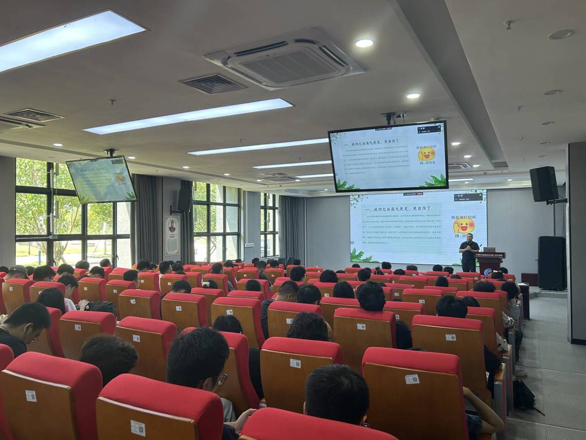 9月5日上午,我院在慧谷1号楼106会议室、5教5503会议室同时开展新生心理健康教育讲座,邀请学校心理中心龙茂森老师主讲,全体研究生新生参加。龙茂森老师结合个人经历以及心理健康教育工作实践和案例,向新生讲述了“大学生活的主要内容”“大学期间的主要任务”“在大学如何获取自我成长”“生涯规划和自我管理”以及“关注自身变化和及时求助的方式”等五个方面内容,指出在大学期间心理健康、人格建立、学业发展、专业成就是每个学生需要努力的重大课题,他还通过一个个精彩的案例深入浅出地为新生们讲解了自我认识、情绪能力、压力管理、生涯探索、宿舍人际关系和导生关系等相关心理健康知识,提醒同学们注重关注心理和情绪上的变化,及时通过自助或寻求他助的方式解决问题。最后,龙老师在新生中广泛普及心理健康知识、心理咨询预约途径,提出这些渠道能帮助新生尽快适应大学生活,让每一位新生知晓求助渠道,顺利度过研究生生活适应期。
