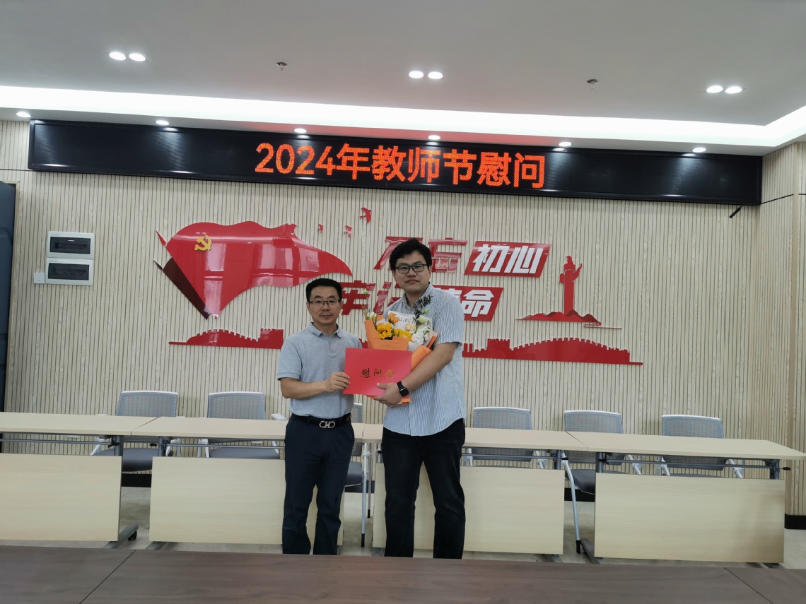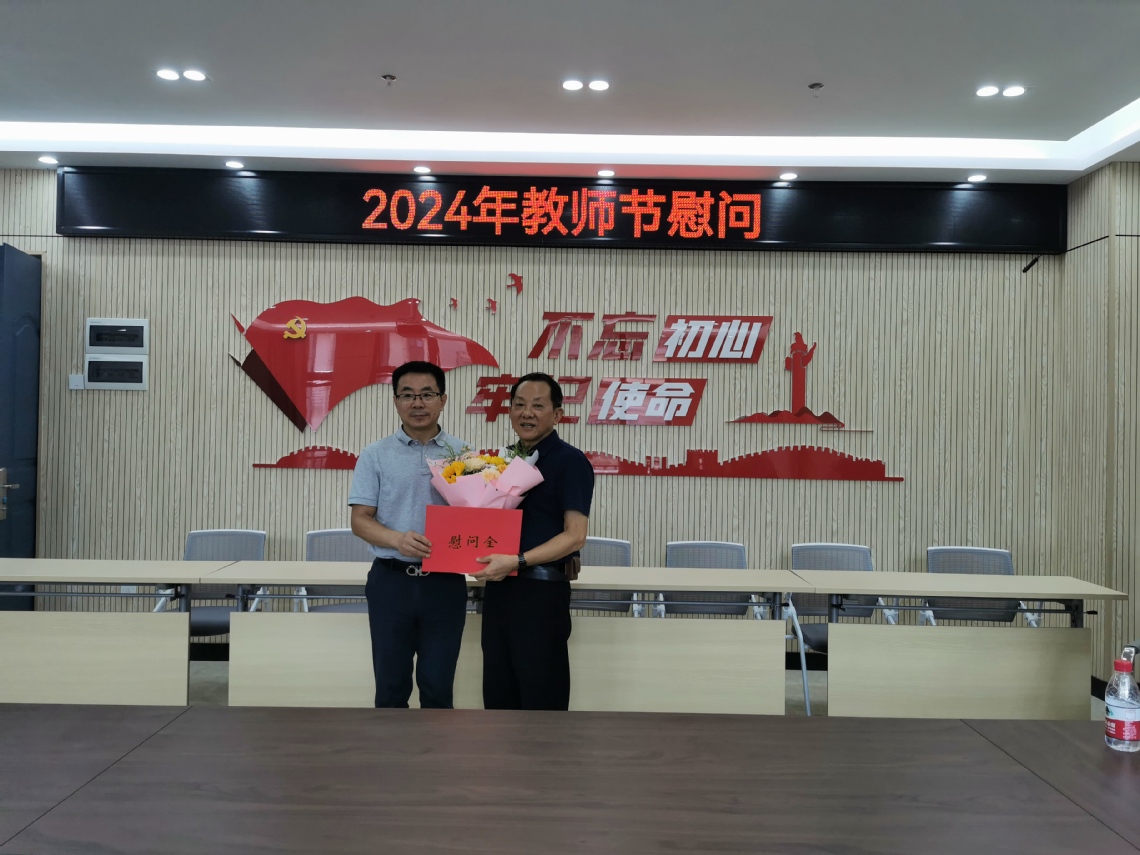 2024年9月9日,在第40个教师节来临之际,潘开林副校长亲切慰问了我院老教师代表江泽涛教授以及青年博士教师代表李龙,向他们致以节日的问候,送上关怀和祝福,同时详细了解了两位老师的教学和科研情况,对他们取得的成绩表示肯定,并对他们的努力表示感谢。此外,潘开林副校长还与我院党政领导班子进行慰问座谈,了解学院发展情况。