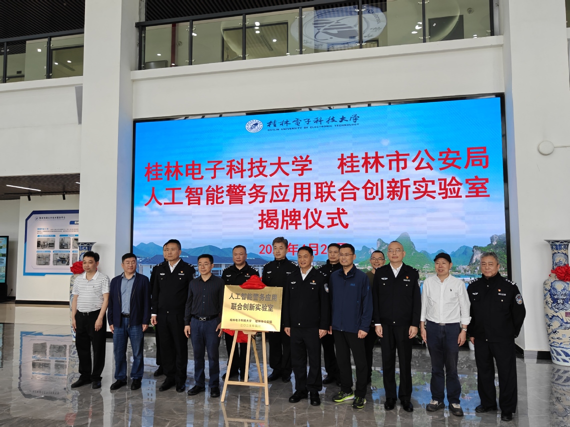 2025年4月24日,三亿官方官网三亿(中国)_三亿(中国)与桂林市公安局联合共建的人工智能警务应用联合创新实验室举行揭牌仪式。桂林市副市长、公安局党委书记、局长莫一格率市公安局相关部门负责人、学校党委常委、副校长潘开林、科学技术发展研究院副院长、产学研合作处处长马传国、计算机与信息安全学院相关负责人和师生参加了揭牌仪式。