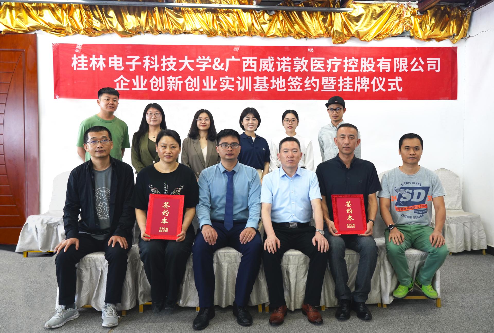 2022年04月29日4月27日,为落实学校“访企拓岗促就业”专项行动,商学院院长袁胜军一行前往广西威诺敦医疗控股有限公司进行走访调研,双方签订“教学实习基地”共建协议并举行挂牌仪式。院长袁胜军、副院长朱霞、部分专任教师、广西威诺敦医疗控股有限公司常务副总陶玉标、行政人事总监陈丽华、实训基地负责人蒋丹阳及其他部门主要负责人参加活动。